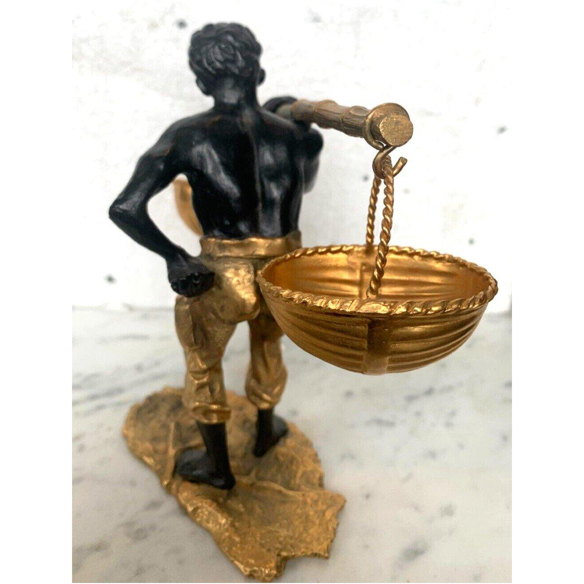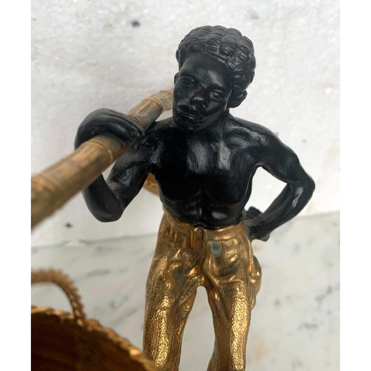 Bronze sculpture with double patina "African Man carrying a basket balance".
