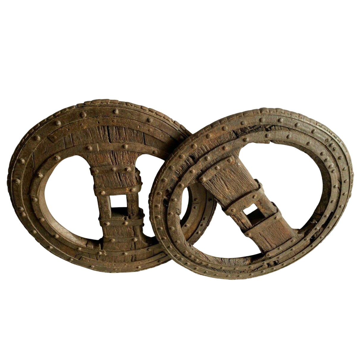 (https://www.artaplaza.com/en/wall-decorations/8580-set-of-two-riveted-wrought-iron-chariot-wheels-16th-century.html)