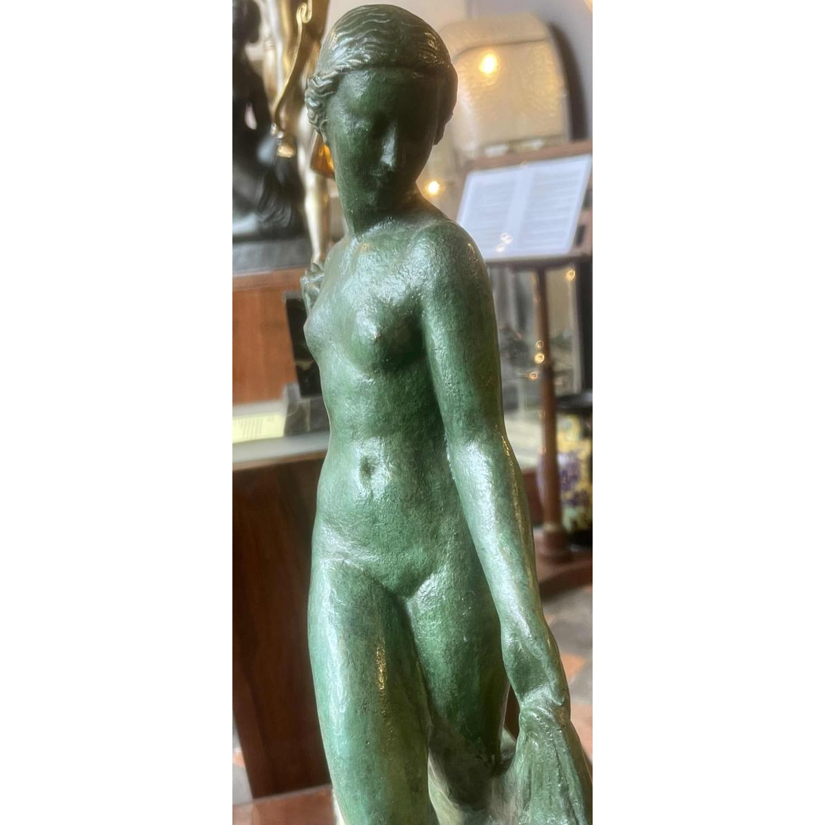 This form is only used to notify us of illegal content on product: Raymonde Guerbe 'Nude woman with drapery and cherubs' Art Deco green patina bronze sculpture, ca 1930.