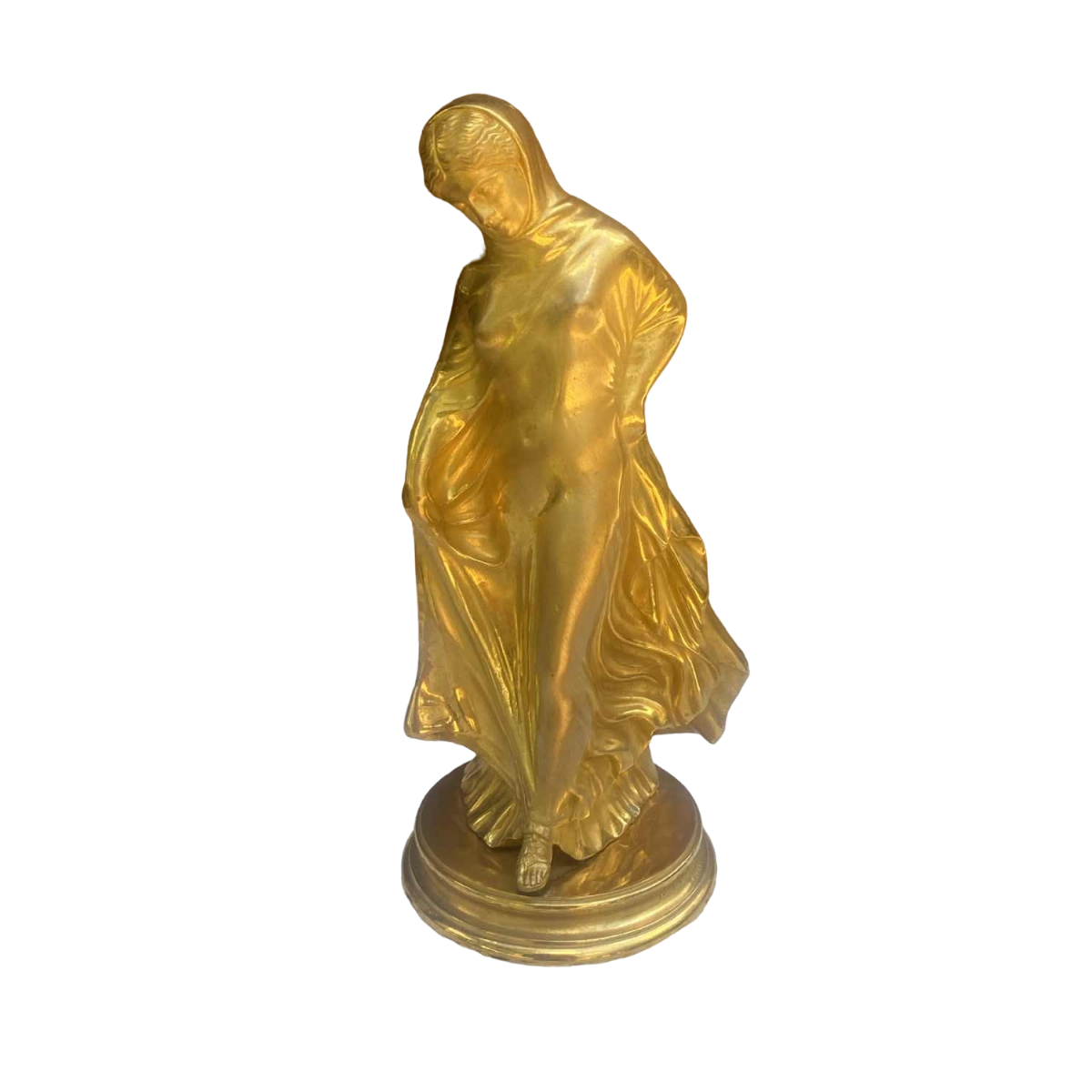 Benedetto Boschetti (Roma) "Woman with drapery" sculpture in gilded bronze