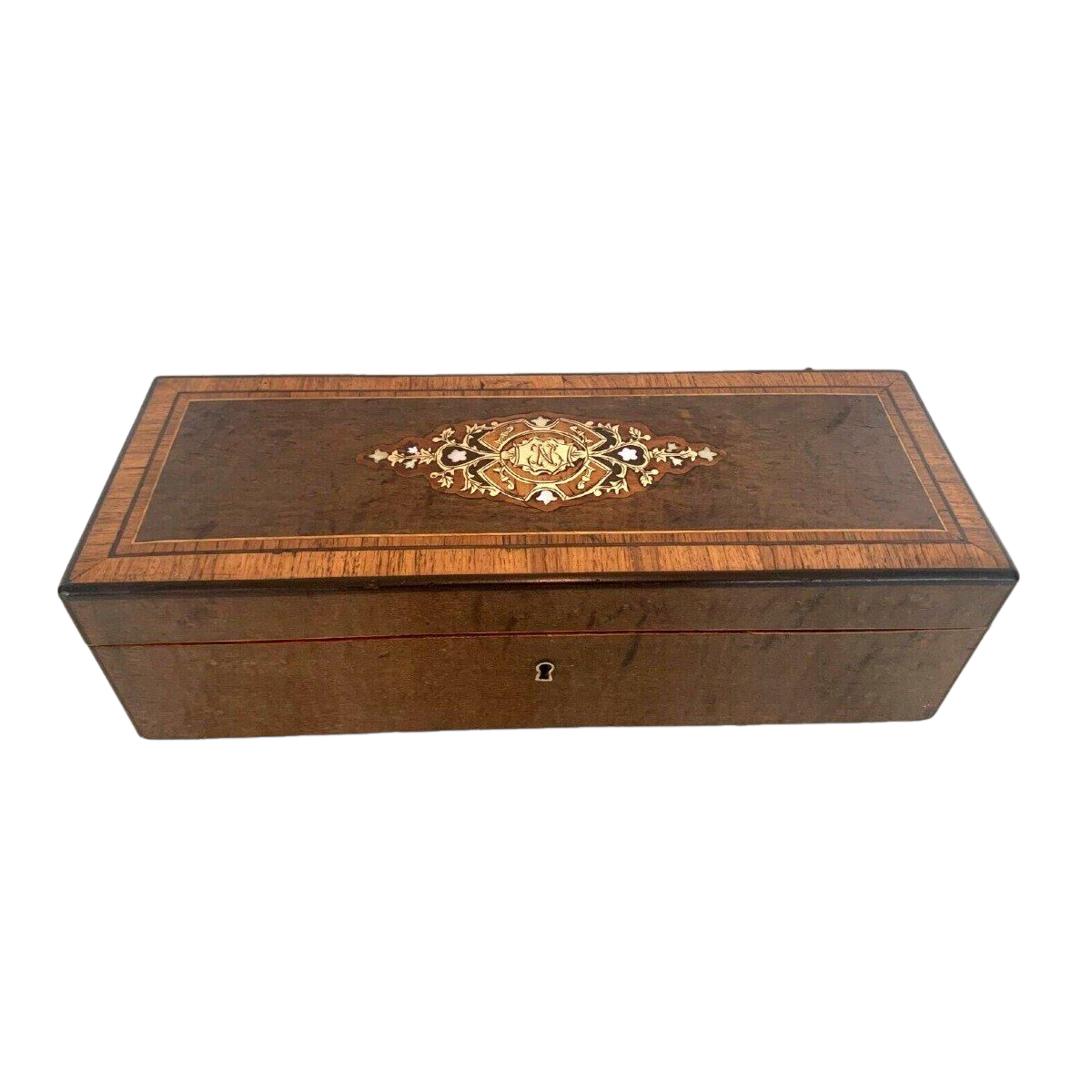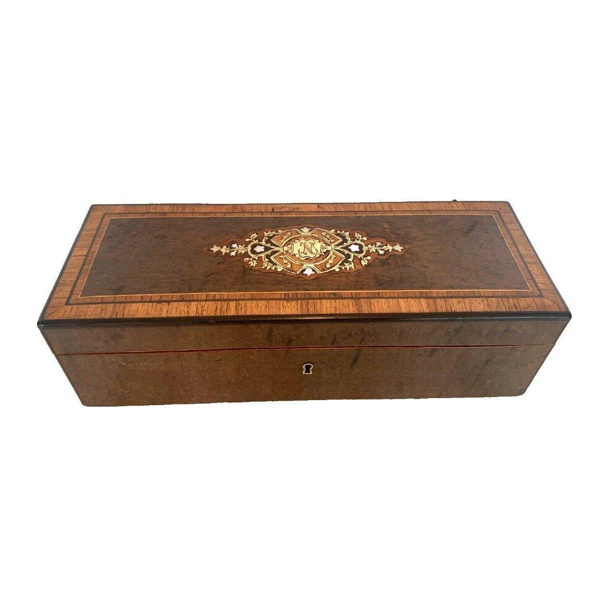 "Boite à bijoux en loupe de noyer Napoléon III, marqueterie Boulle, bois de placage de loupe de noyer et bois de rose.