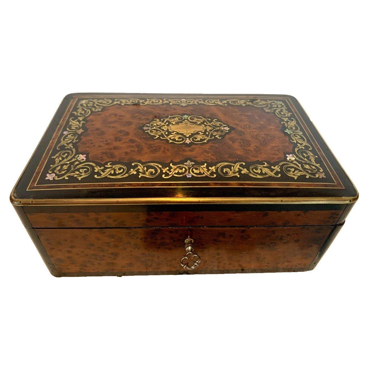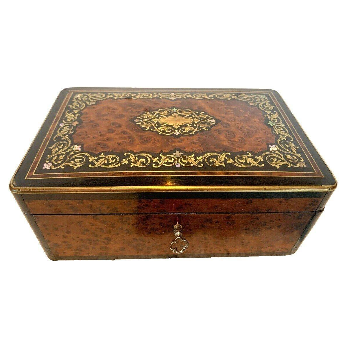 (https://www.artaplaza.com/fr/autres-armoires/8449-boite-a-bijoux-en-loupe-de-thuya-et-marqueterie-de-laiton-grave-xixe-siecle.html)