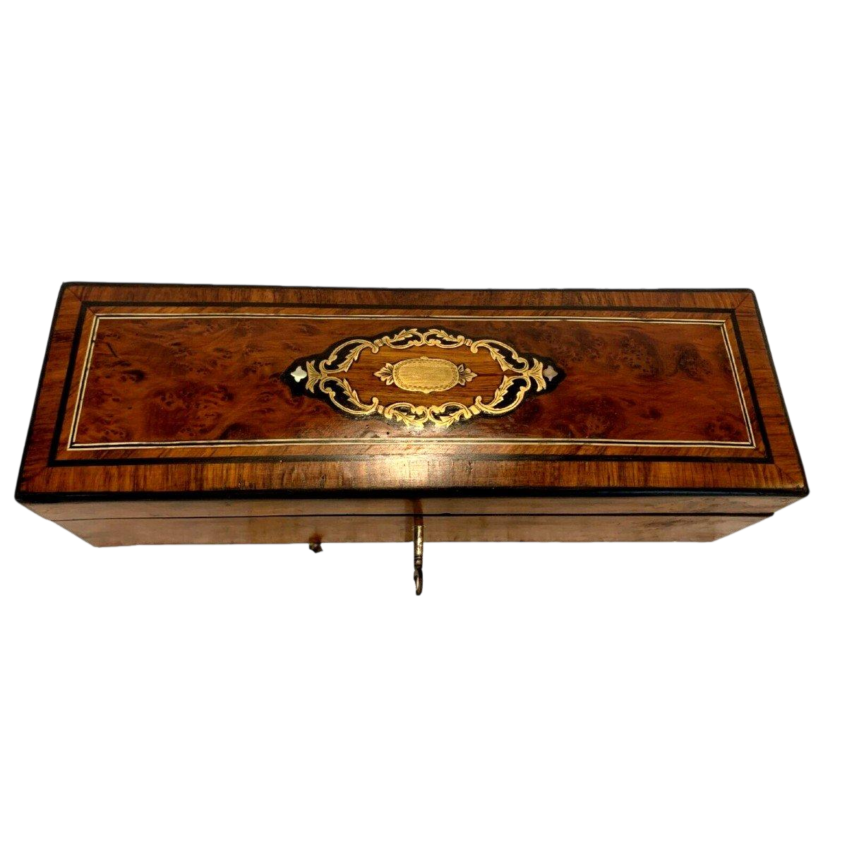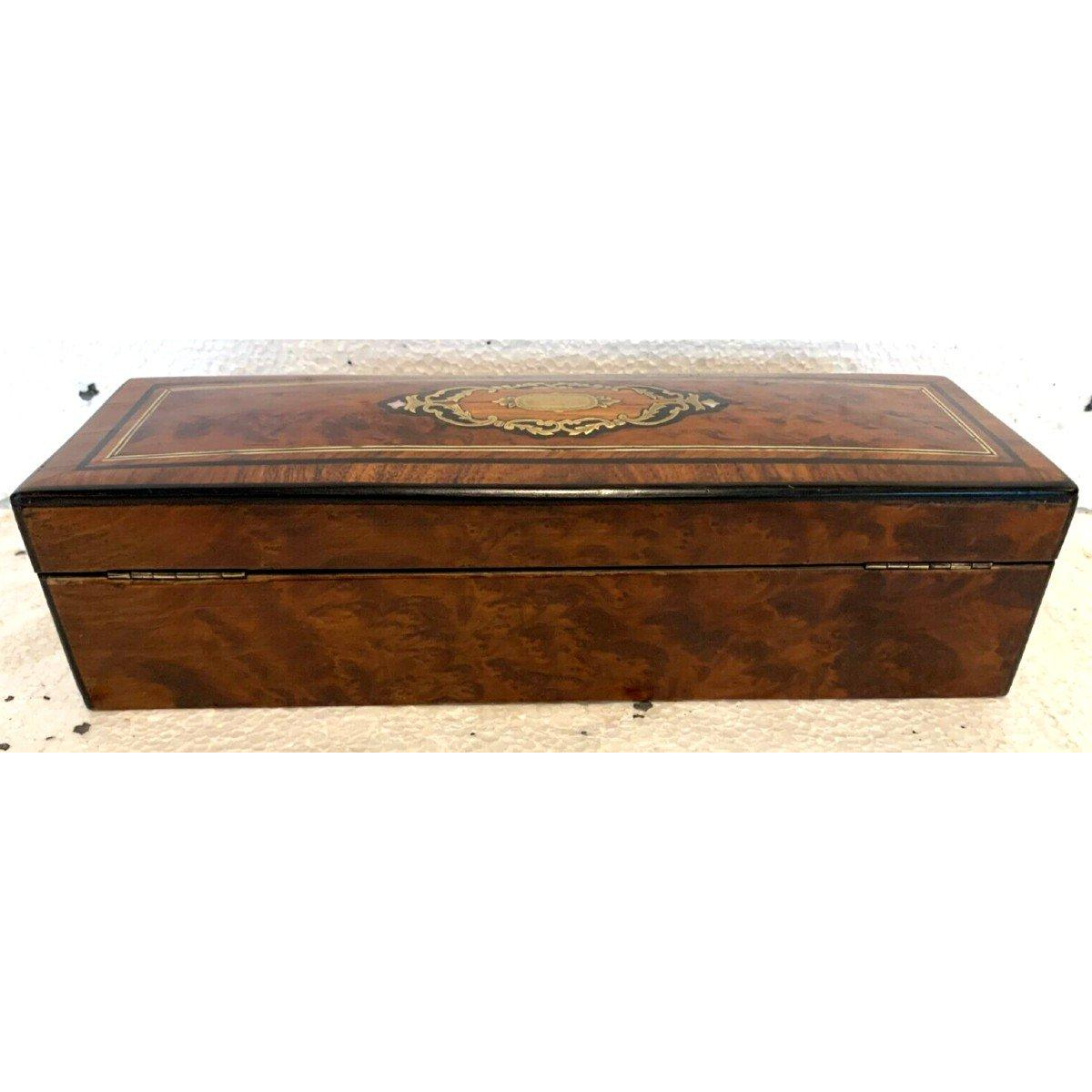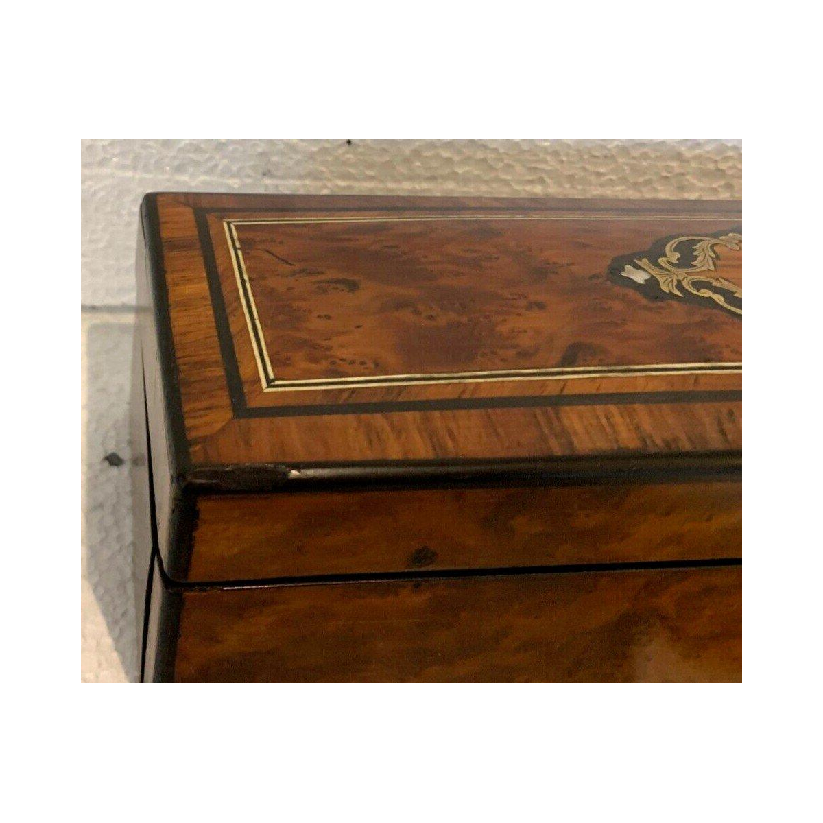 Boîte à gants en loupe de thuya Napoléon III, marqueterie Boulle, XIXᵉ siècle