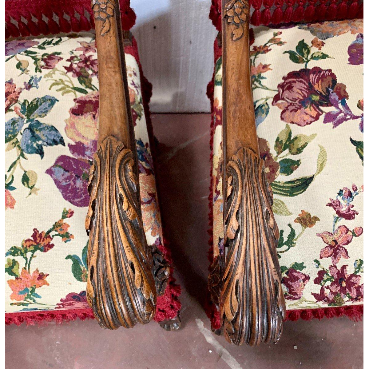 Paire De Fauteuils De Style Renaissance En Noyer Massif XIX Siècle