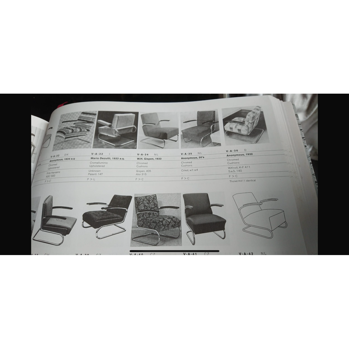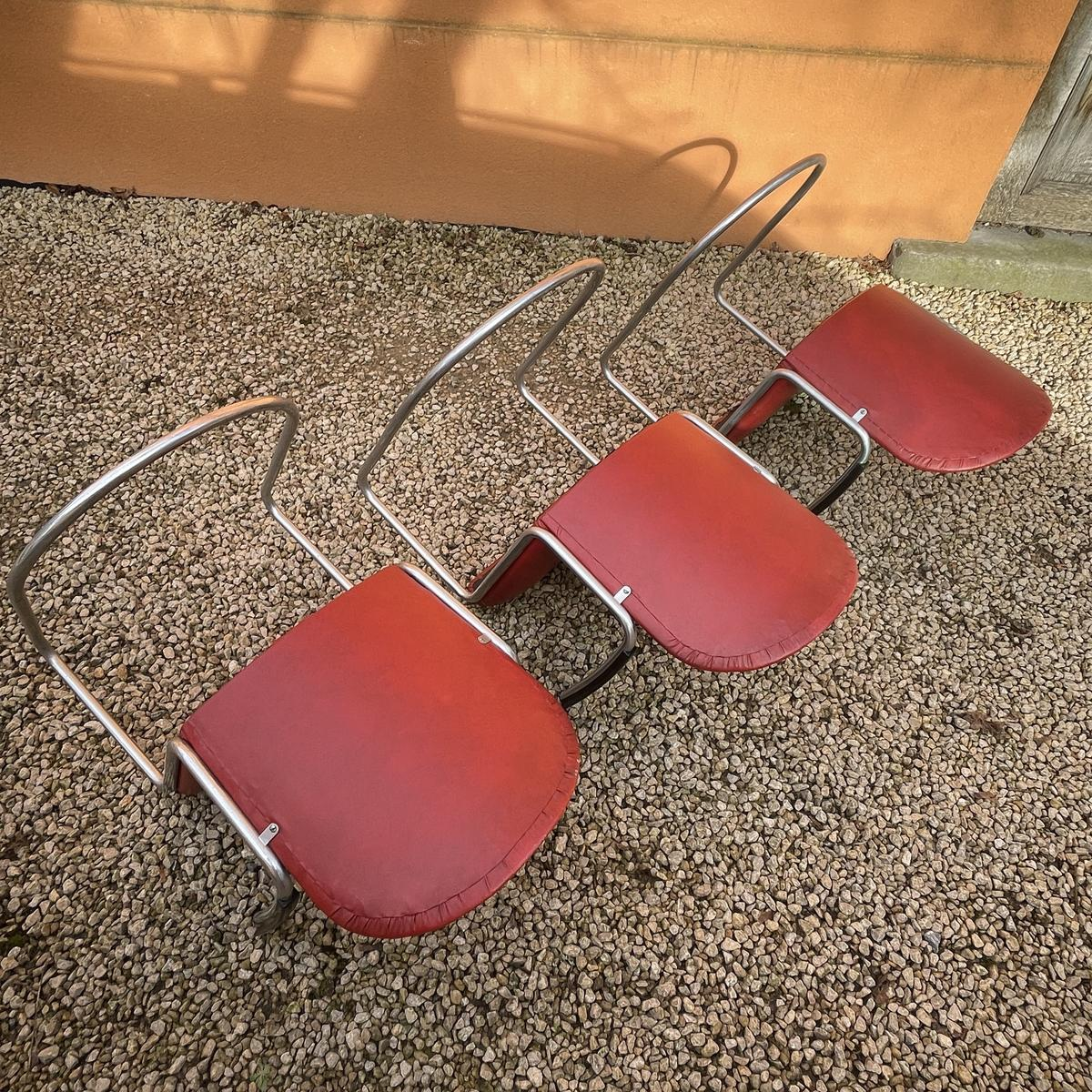 Ce formulaire permet uniquement de nous faire part d'un contenu illicite sur le produit : WILLEM HENDRIK GISPEN, set de 3 fauteuils 413 Art Déco moderniste, structure cantilever tube d'acier, design Bauhaus 1930s.
