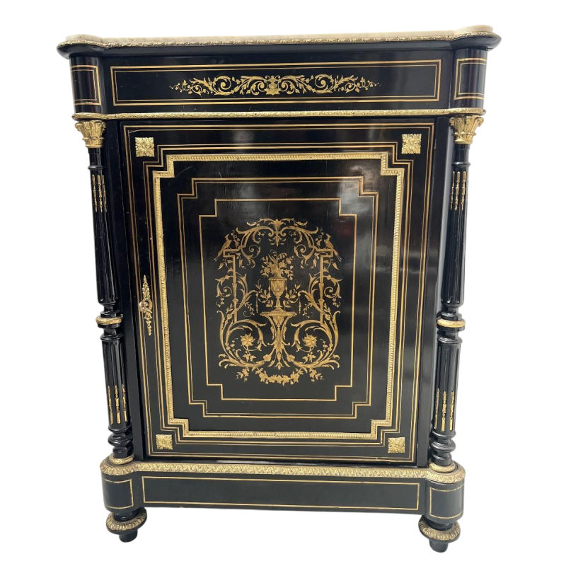 (https://www.artaplaza.com/fr/autres-mobiliers/8534-meuble-napoleon-iii-a-une-porte-en-bois-noirci-et-marqueterie-de-laiton-xixe-sie.html)