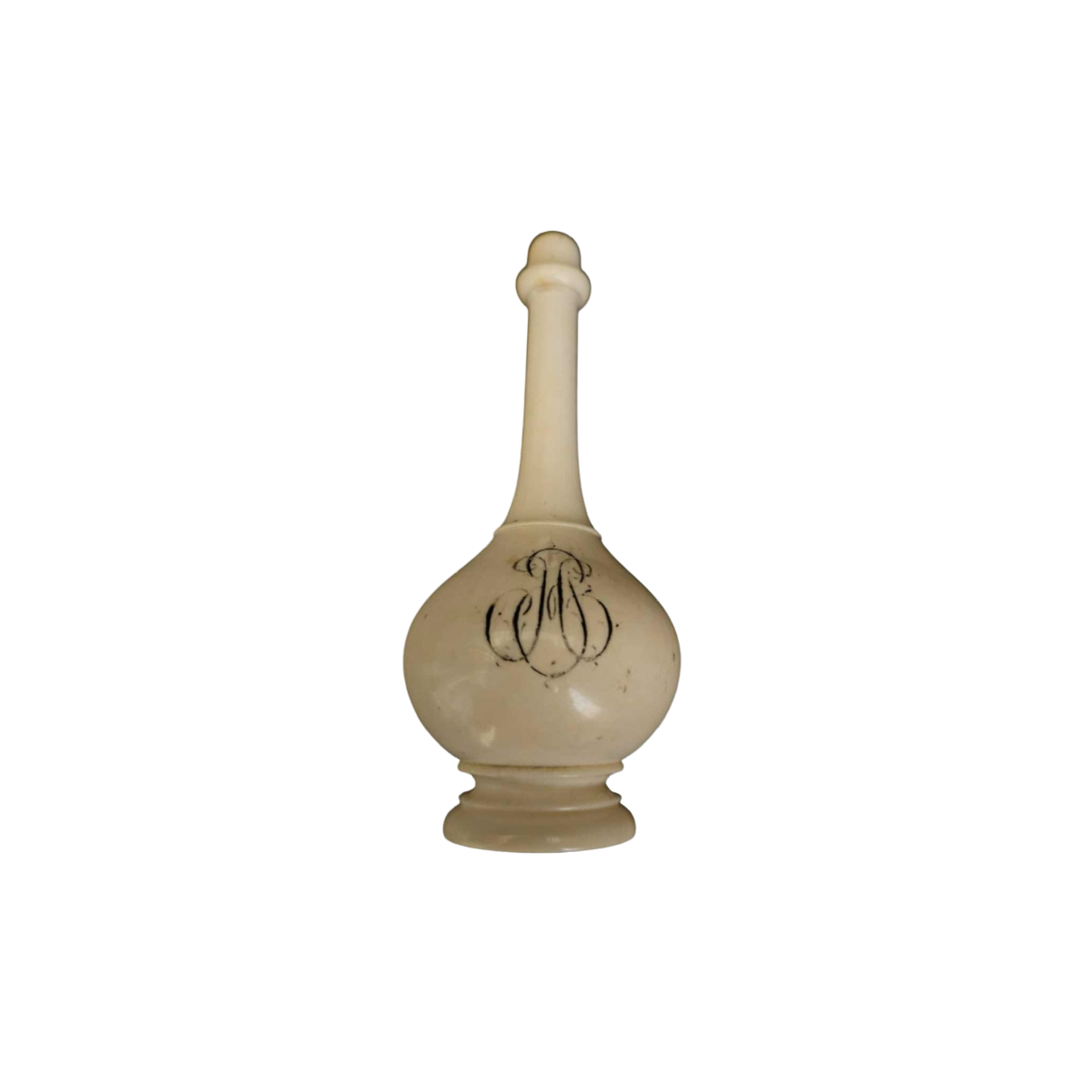 poudreuse à gants démontable (en 3 parties - le haut et le milieu se dévissent) en ivoire de Dieppe avec initiales en argent. Travail français (Dieppe) du 19ème siècle. Certificat de la Cites.