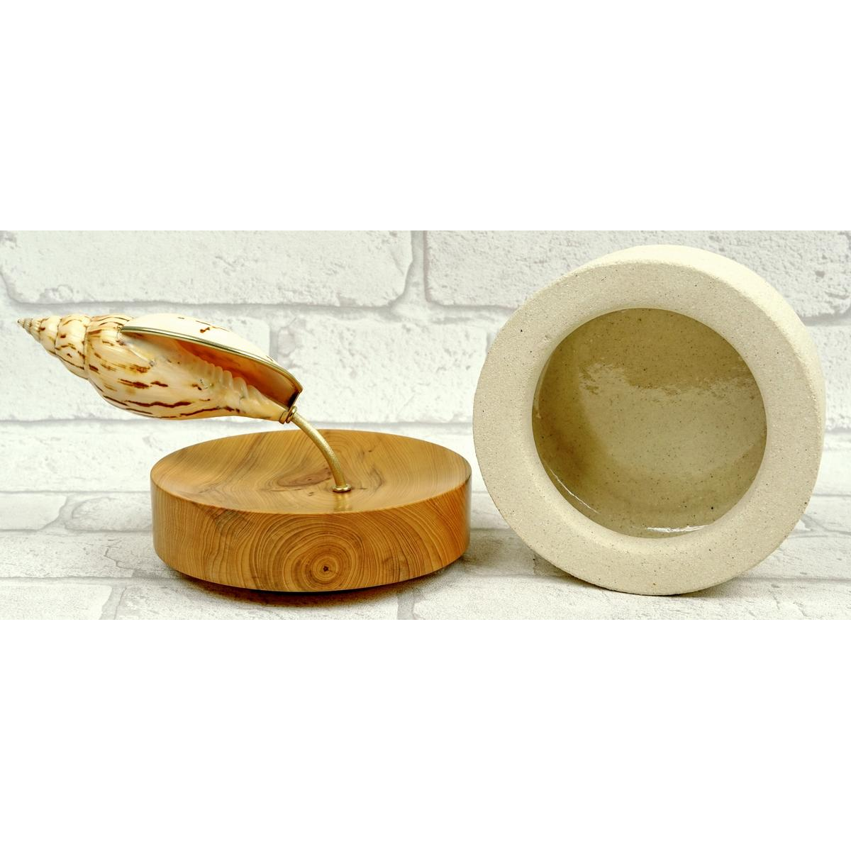 "HYDRO" boite sculpture créée par 3 artistes, le corps en céramique chamotté par Clément Petibon, le couvercle en bois d'if et la prise du couvercle en coquillage serti de laiton verni et perlé laiton doré par Isabelle Fustinoni