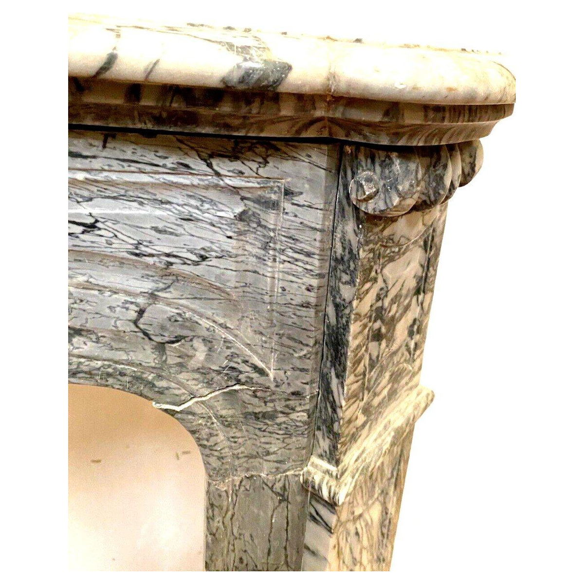Cheminée de style Louis XV, model Pompadour, marbre bleu Turquin, XXe s