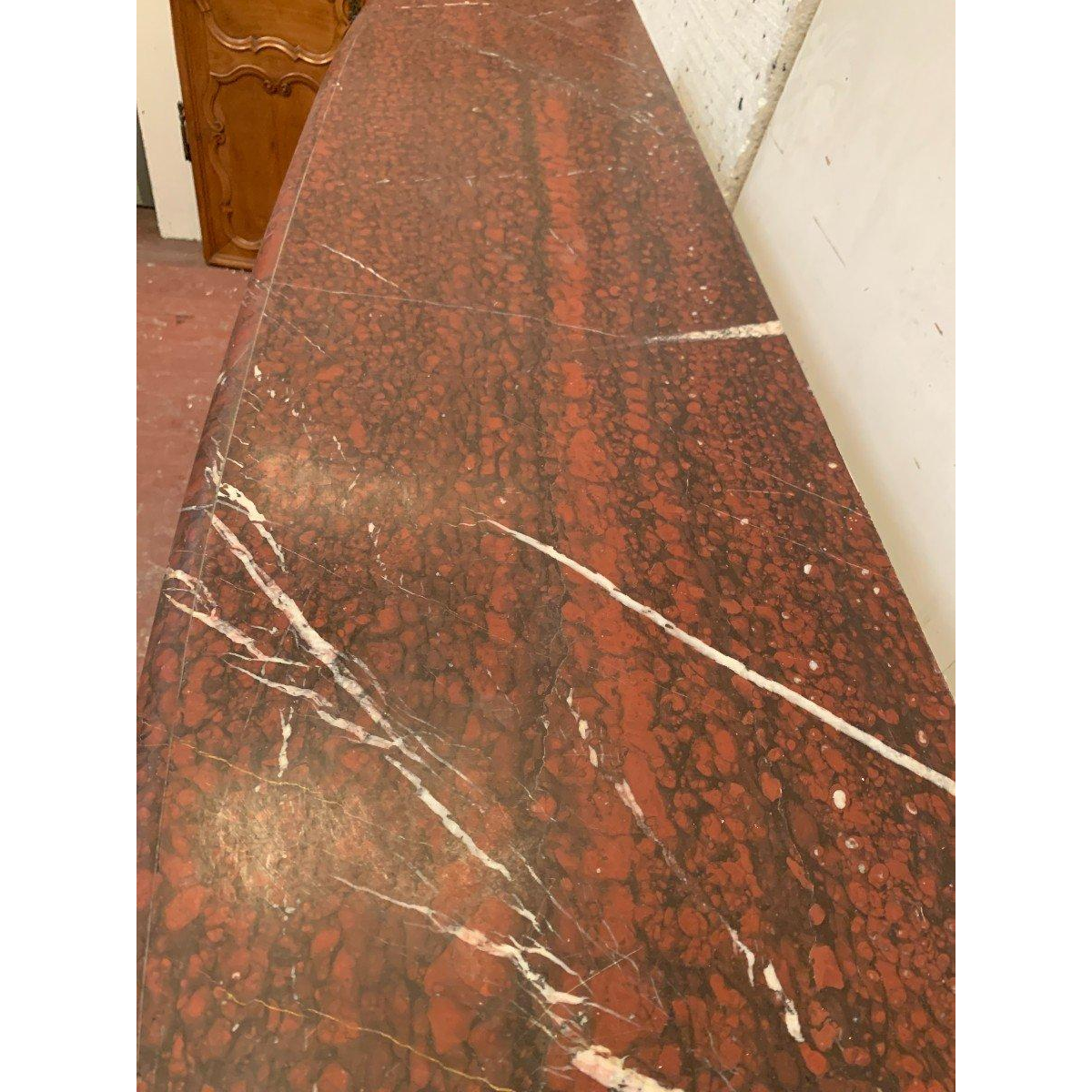 Paire de cheminées Louis XIX en marbre "Rouge Griotte ".