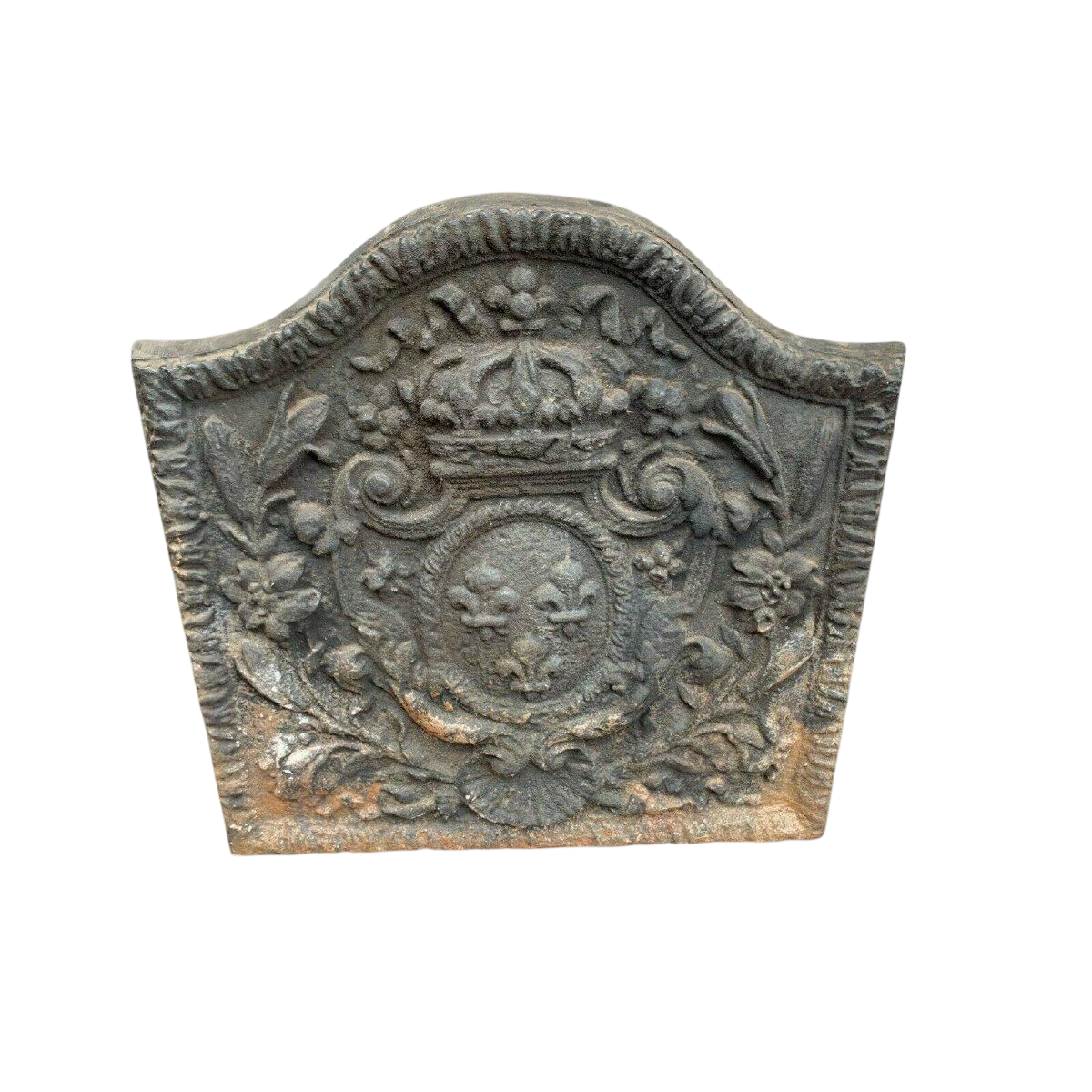 Ancienne plaque en fonte de fond de cheminée.