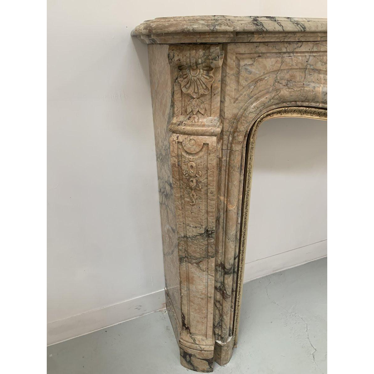 Cheminée de style Louis XV en marbre de brèche.