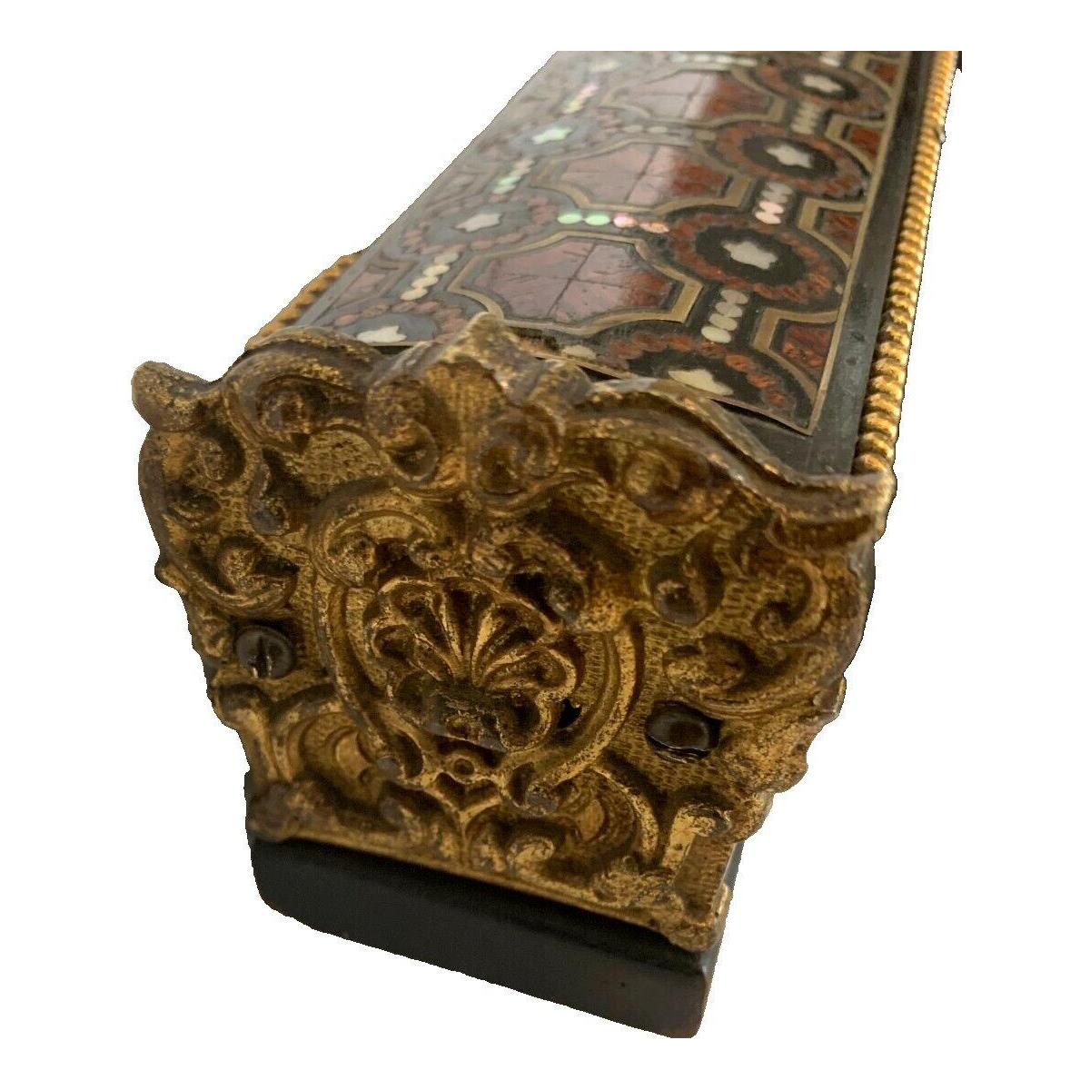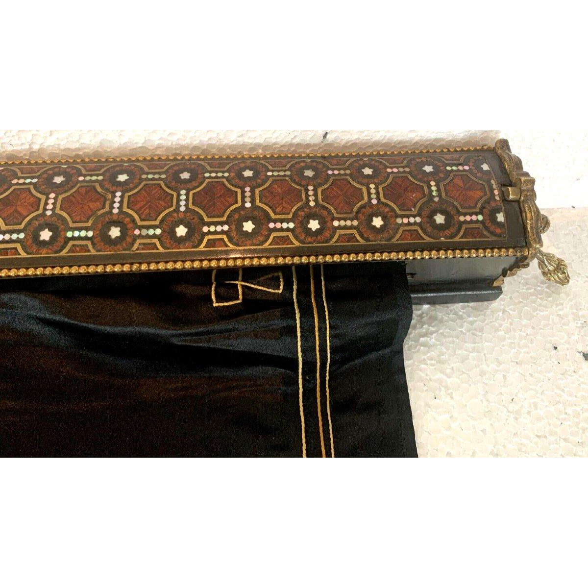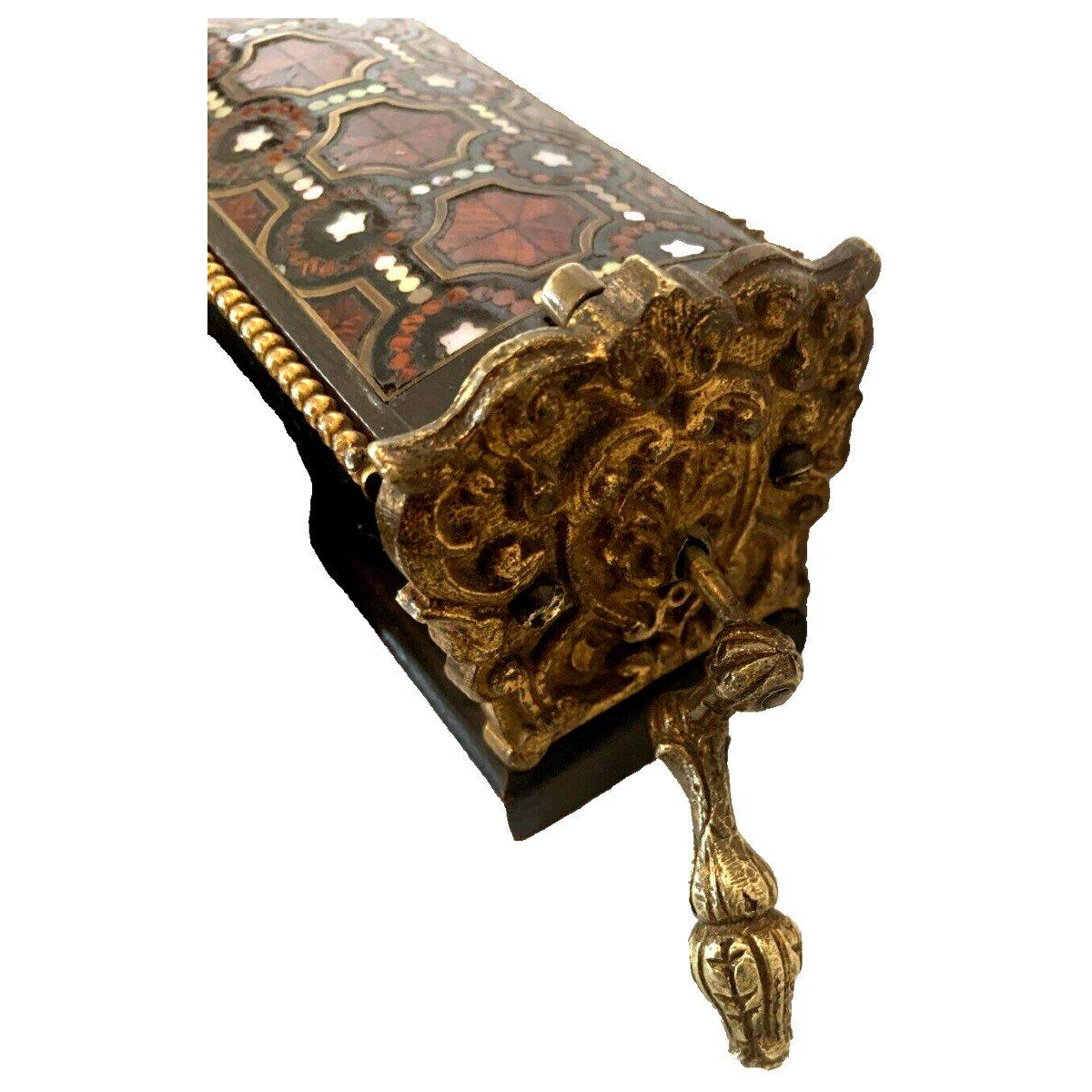 Coffret en bois à incrustation de filets de laiton et de nacre.