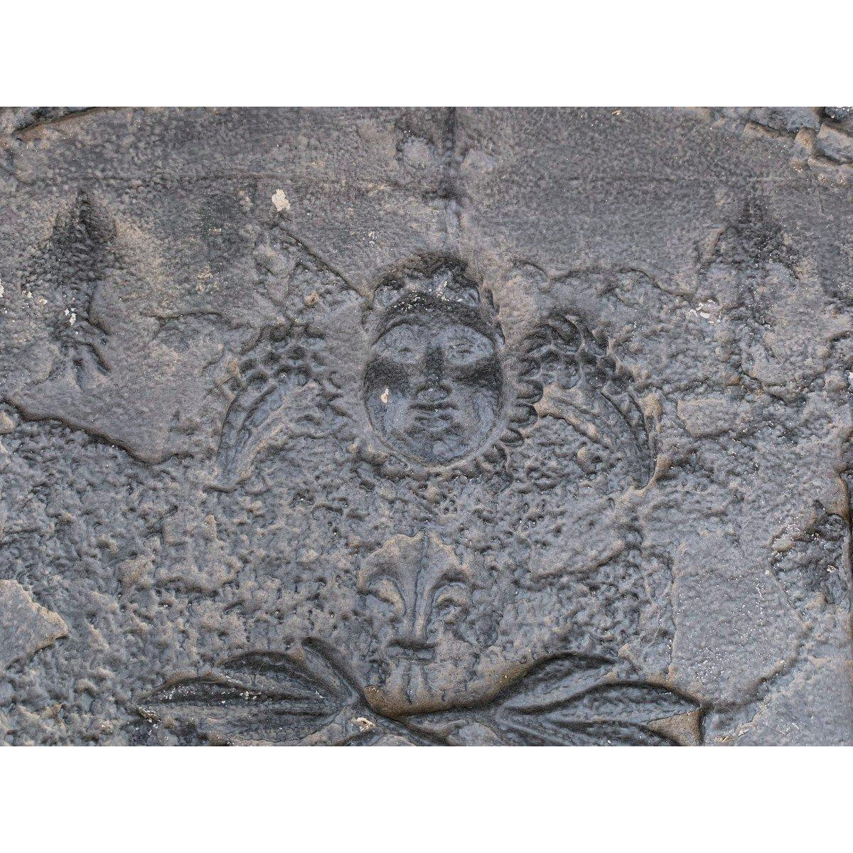 Ancienne plaque en fonte de fond de cheminée.