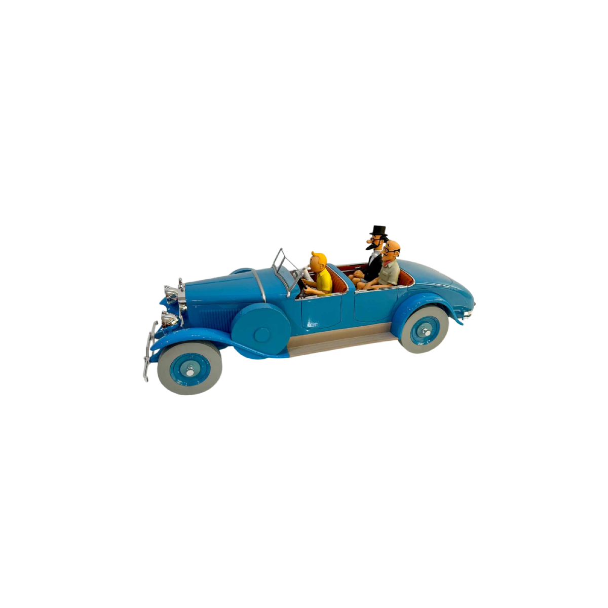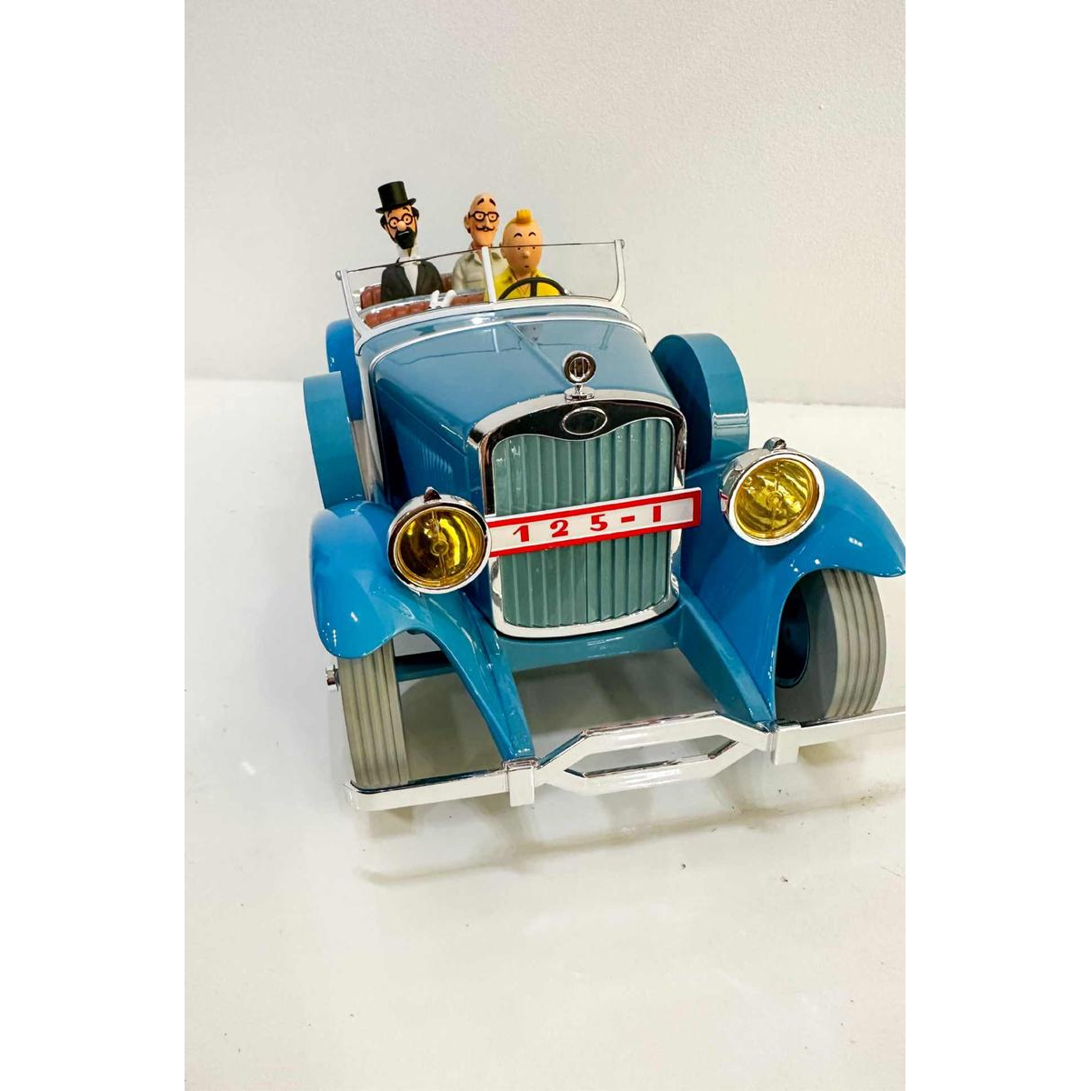 Voiture de collection de grand format, avec Tintin et Milou, tirée d'une scène des "Cigares du Pharaon" avec le Professeur Siclone; vendue avec sa boîte.