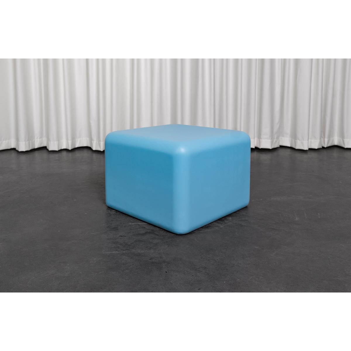 Table d'appoint par Milo Baughman pour Thayer Coggin, années 1980. Ce bout de canapé aux angles arrondis a été relique en bleu ciel.