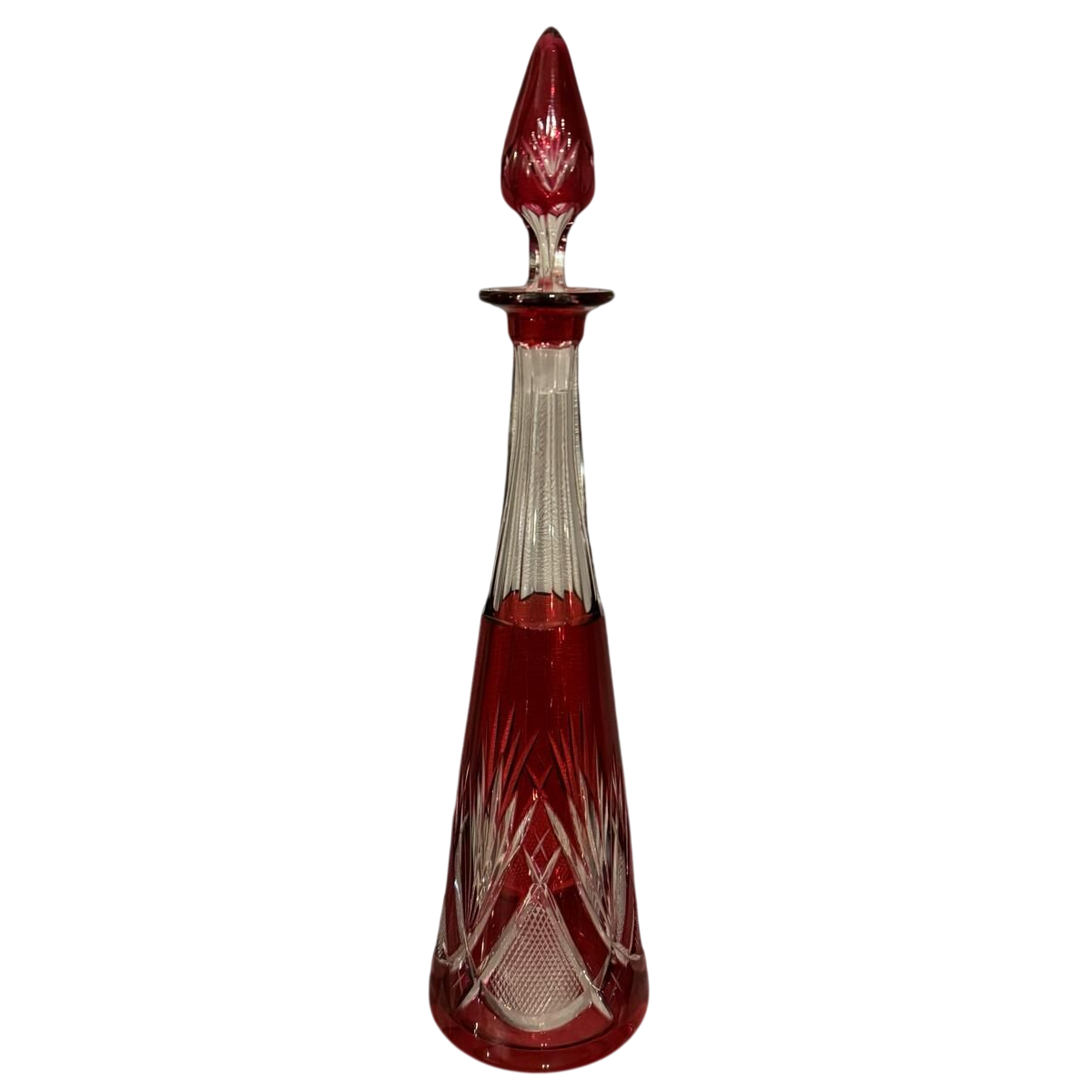 Val Saint Lambert, Carafe en cristal taillé incolore doublé rouge