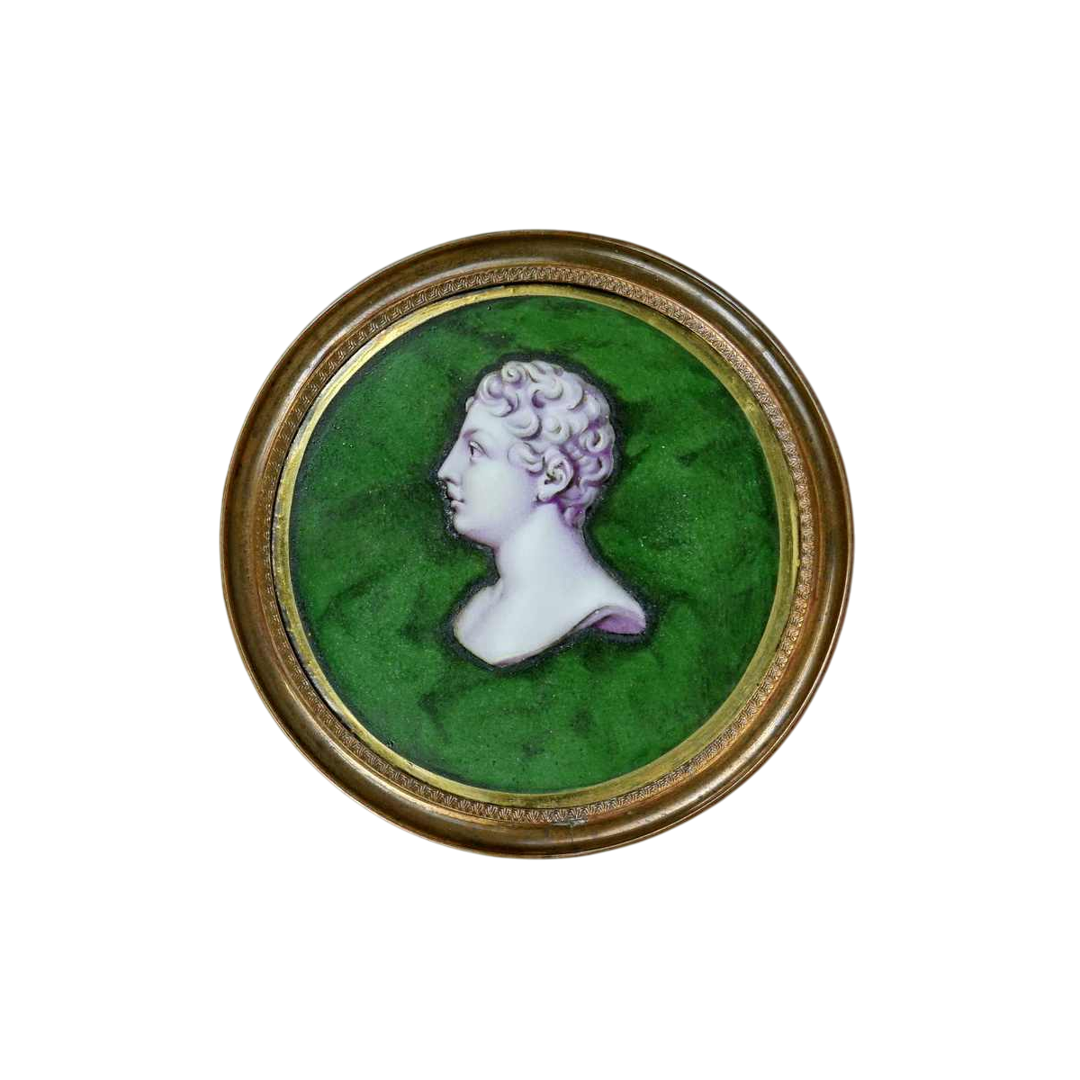 Fond à l'imitation de la malachite, décoré du buste en grisaille.