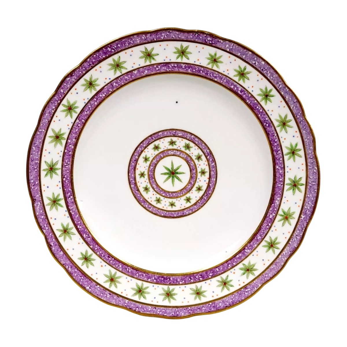 Cette ASSIETTE provient du SERVICE « ZONES PORPHYRES ROSETTE ÉTRUSQUES ». Un dessin du décor de cette assiette figure dans l'album de dessins d'assiettes conservé à la Manufacture de Sèvres sous le n° 170. Il fut livré au Citoyen SAUVEGRAIN le 29 ventôse an VII (19 Mars 1799), mentionné comme boucher ou fournisseurs de la boucherie des hospices ou encore fournisseurs des établissements publics. Ref. : D. Peters, Sèvres Plates and Service of the 18th century, 2005, n° 99-2, vol. V, pg 1205-1206.