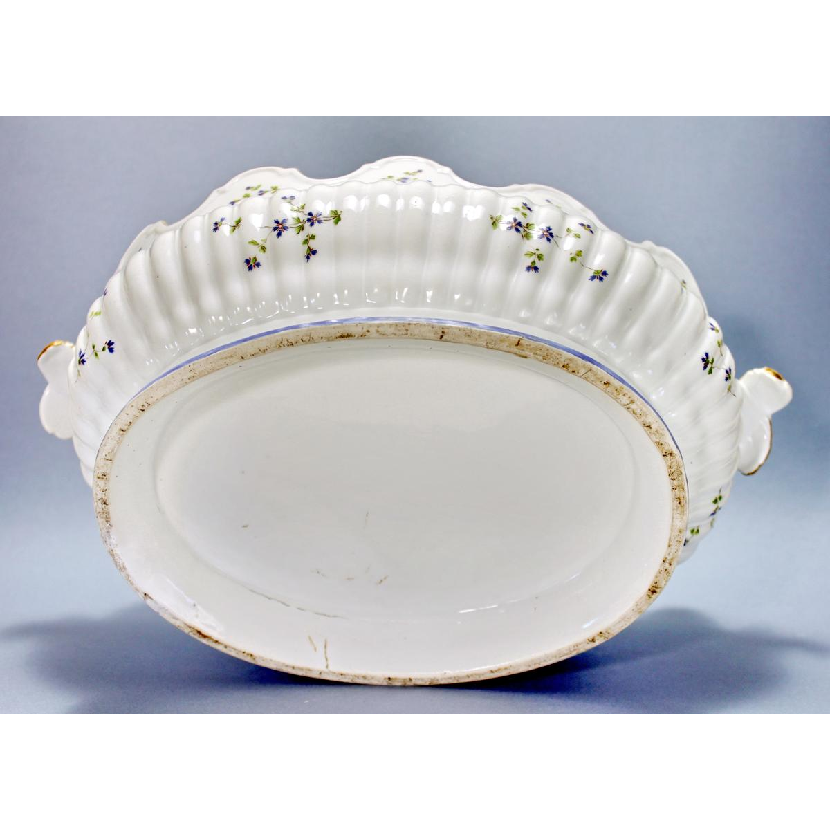 Cette pièce ne possède pas de marque, mais sa forme (à godrons) et son décor ne laissent aucun doute à la production de la manufacture de porcelaine de Niderviller. Elle a produit plusieurs pièces à décor de godrons : des verrières mais aussi des
