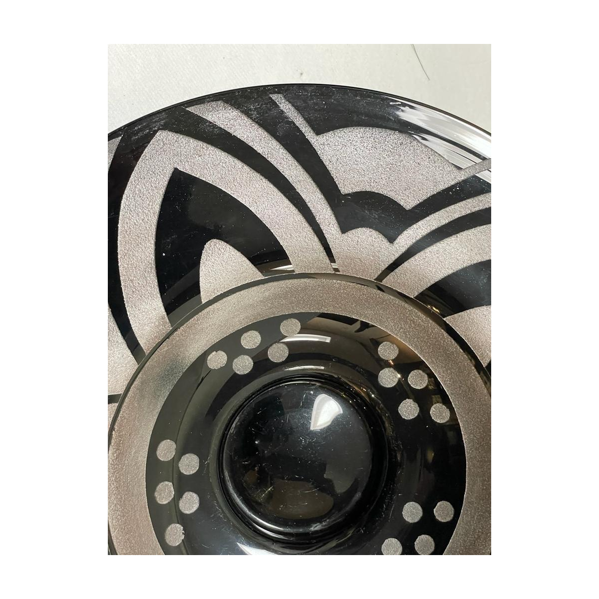 Plat en verre noir avec gravure geométrique - travail belge