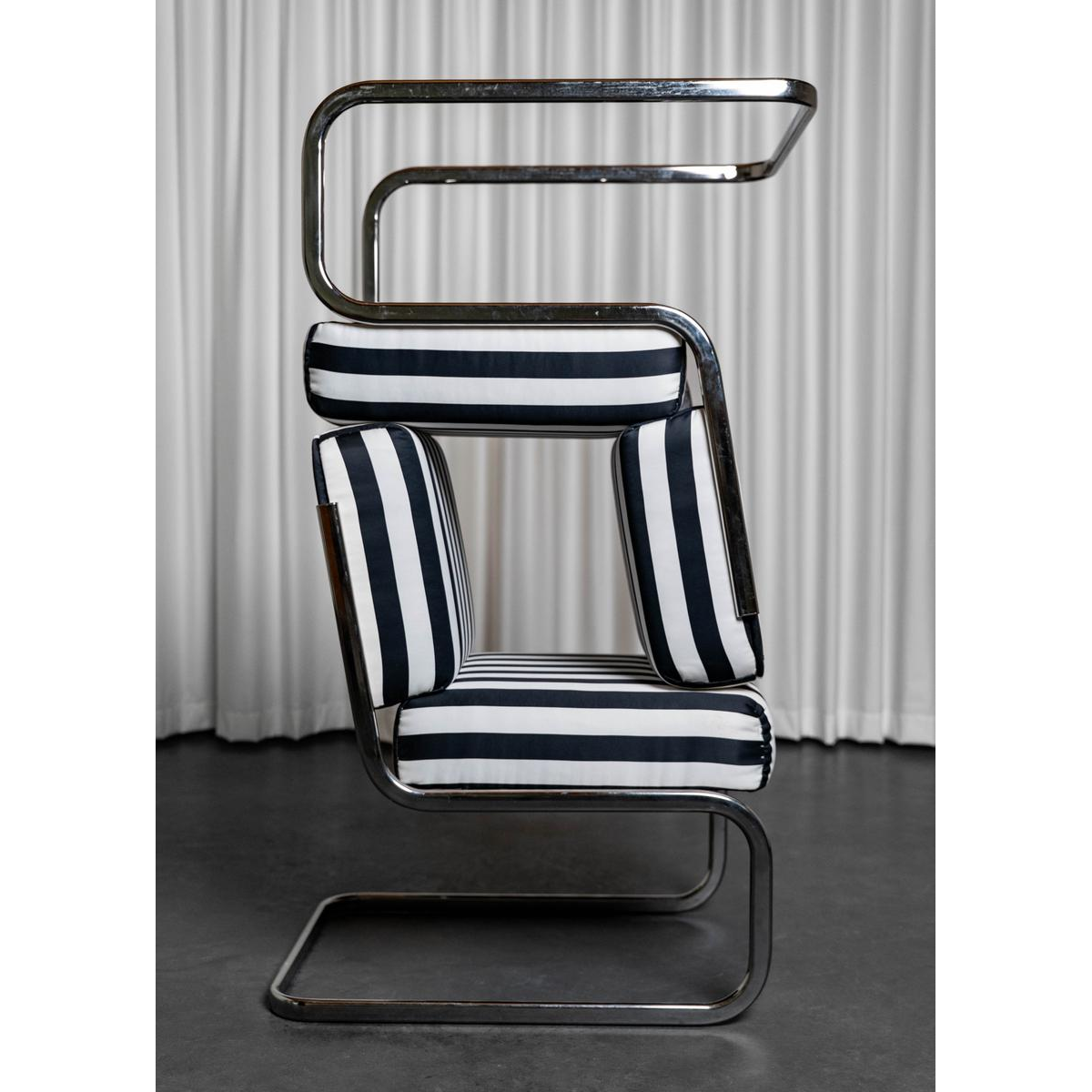 Paire de chauffeuses style Moderniste Bahaus, tissu stripe, 1970s