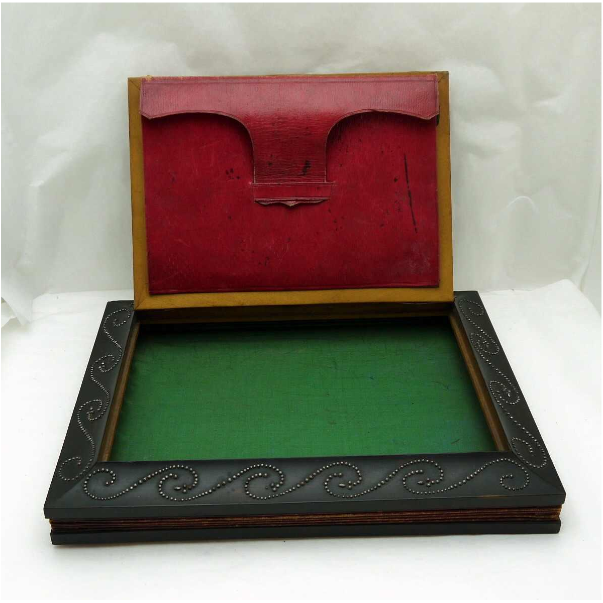 En loupe et bois noirci garnissage de cuir rouge et soie verte