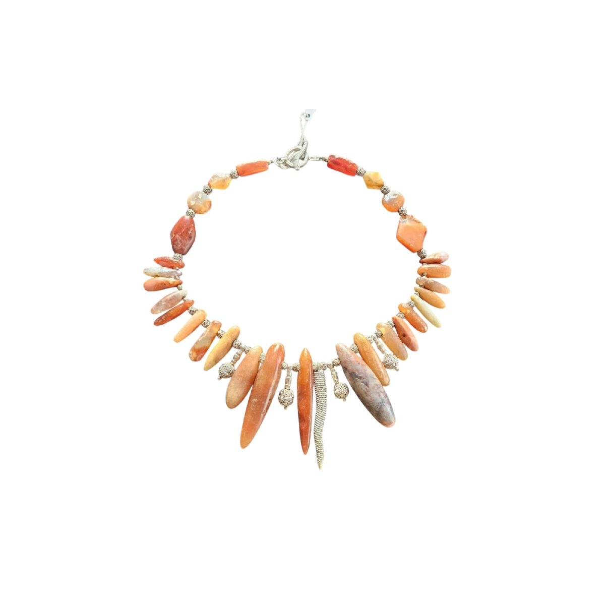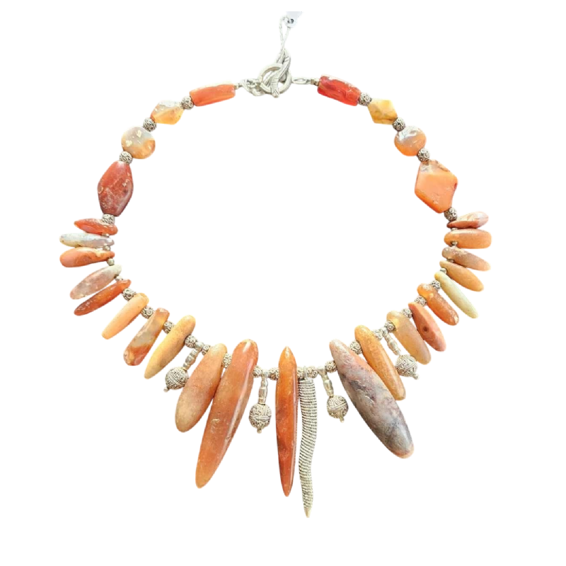 Collier de perles néolithiques en cornaline, pendentif en argent (Peuhl).