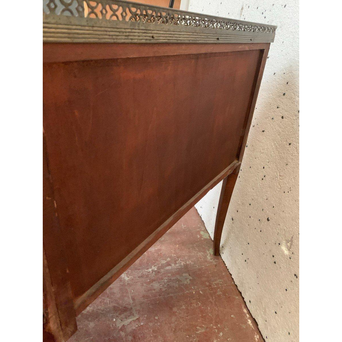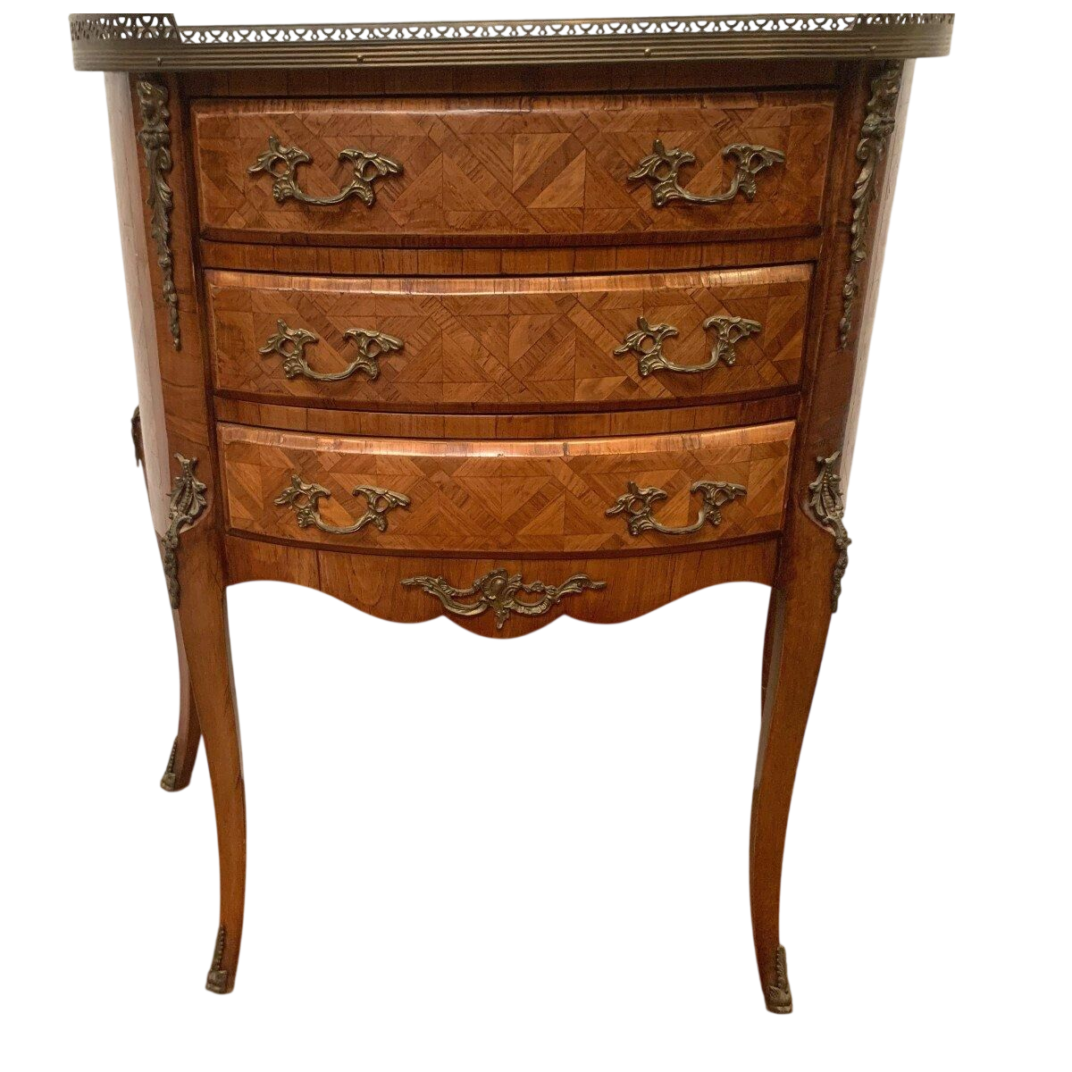 Dessus en plateau de bois à galerie de laiton ajouré.