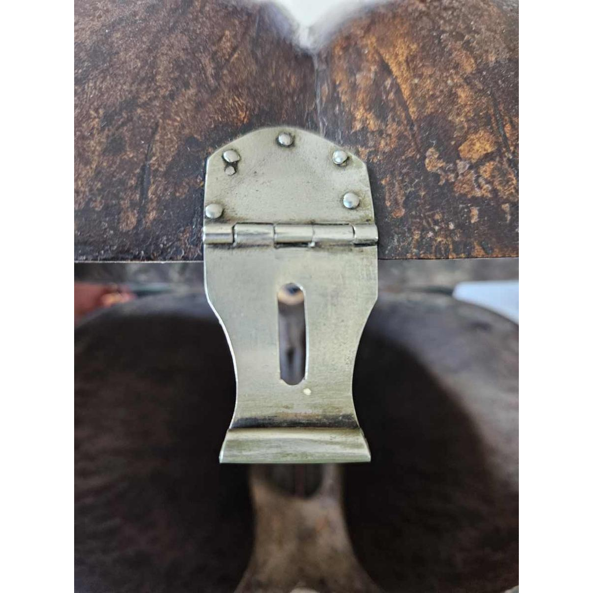 Creusée et sculptée sous forme de boîte, cet objet de collection et de curiosité est assez rare sous cette forme. On la trouve généralement entière.
