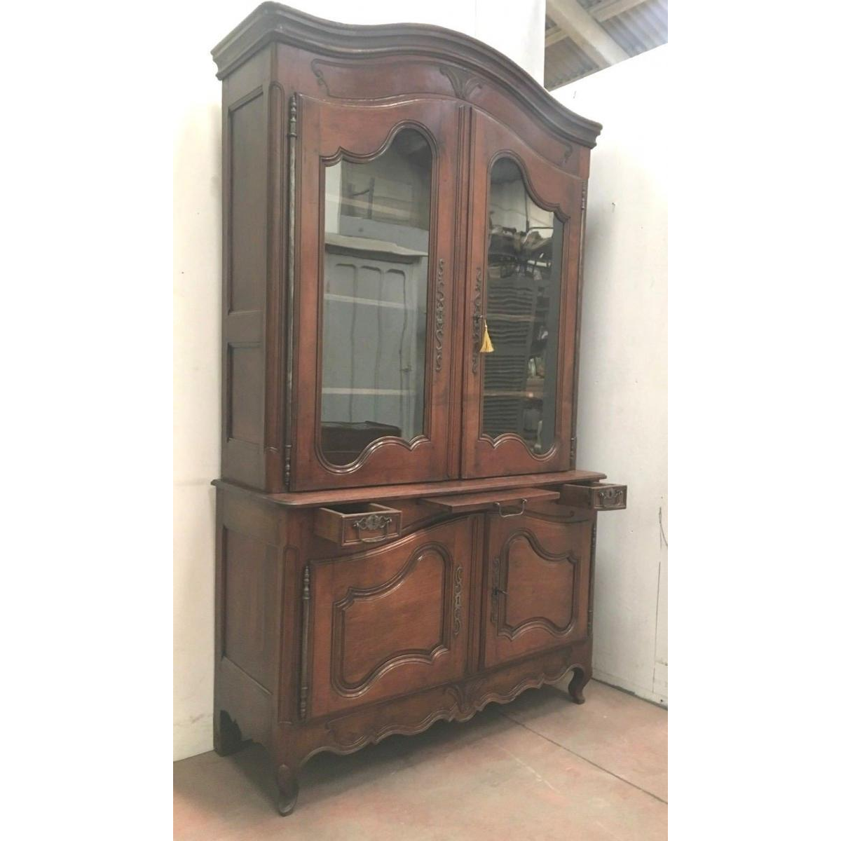 Buffet en deux corps Louis XV en noyer massif, XVIIIᵉ siècle