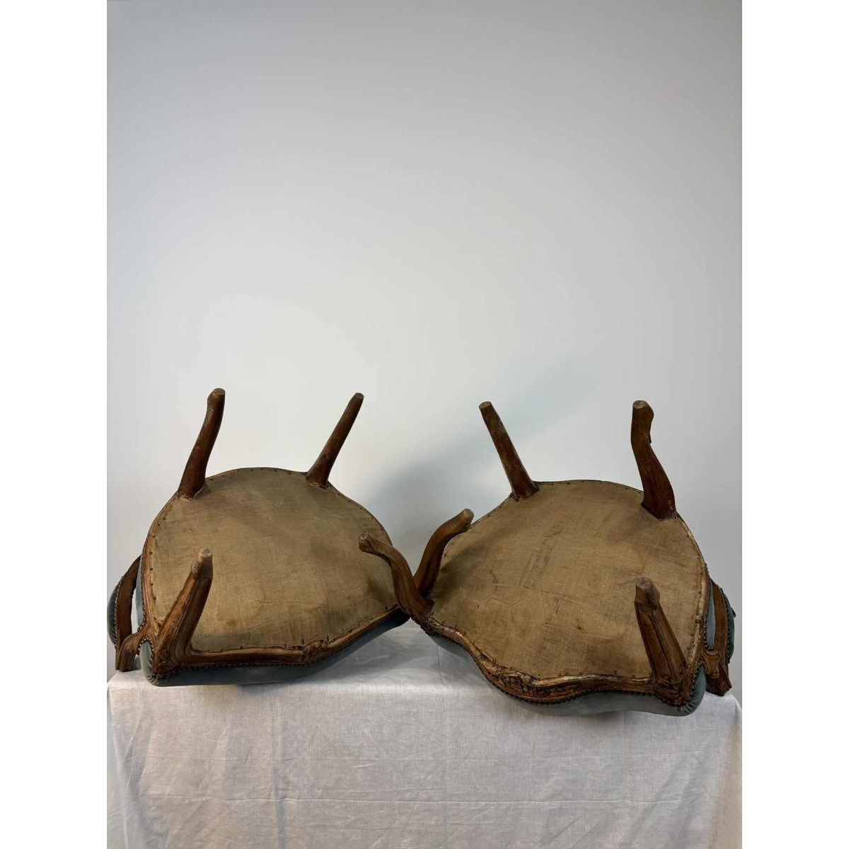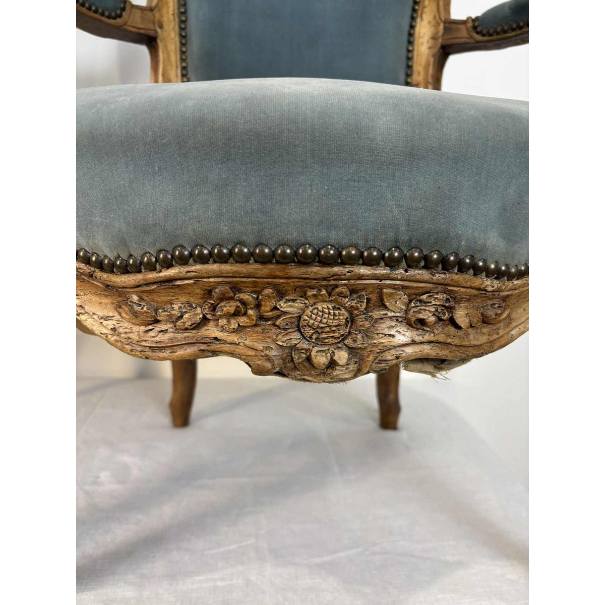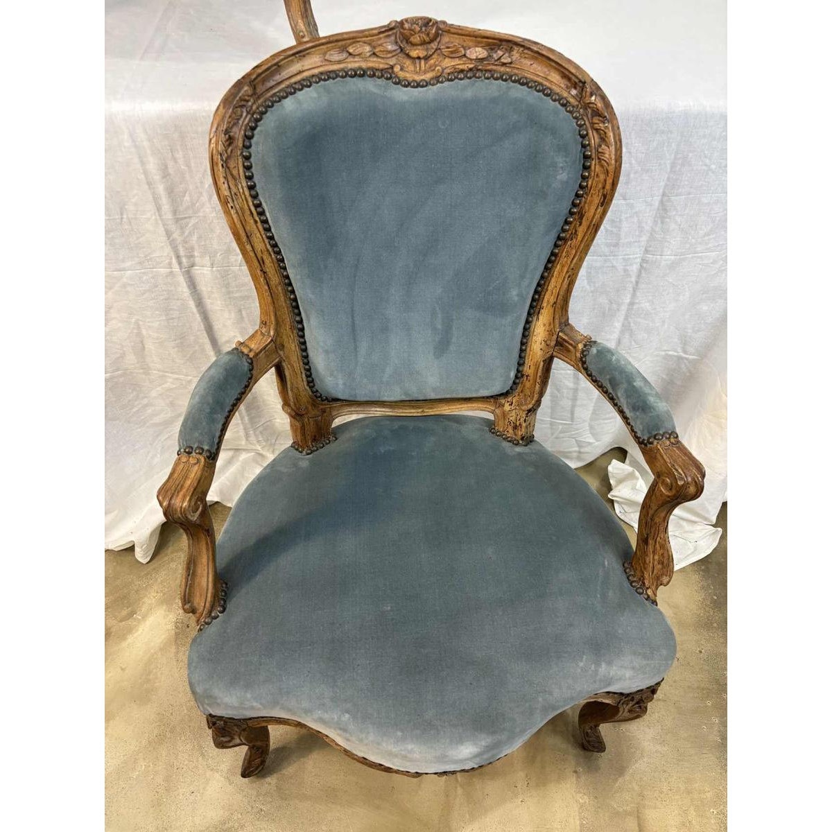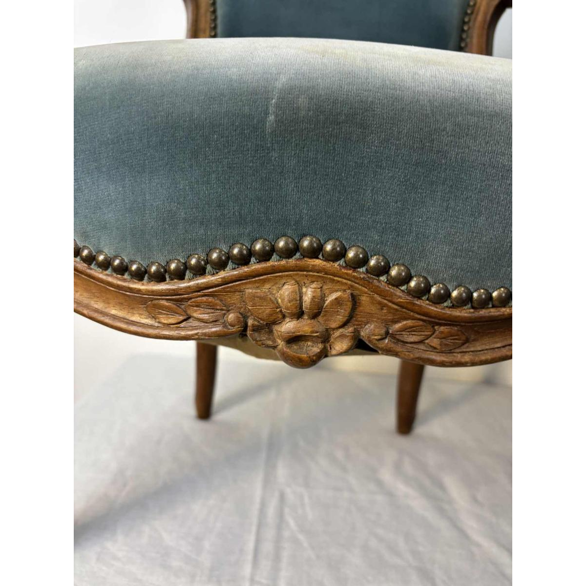 Assise et dossier garnis d'un velours bleu. Usure d'usage légère visible sur l'une des assises (cf photo).