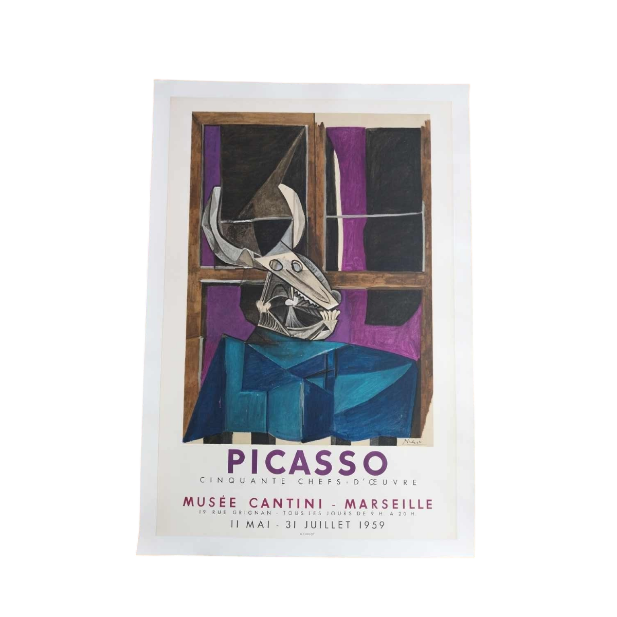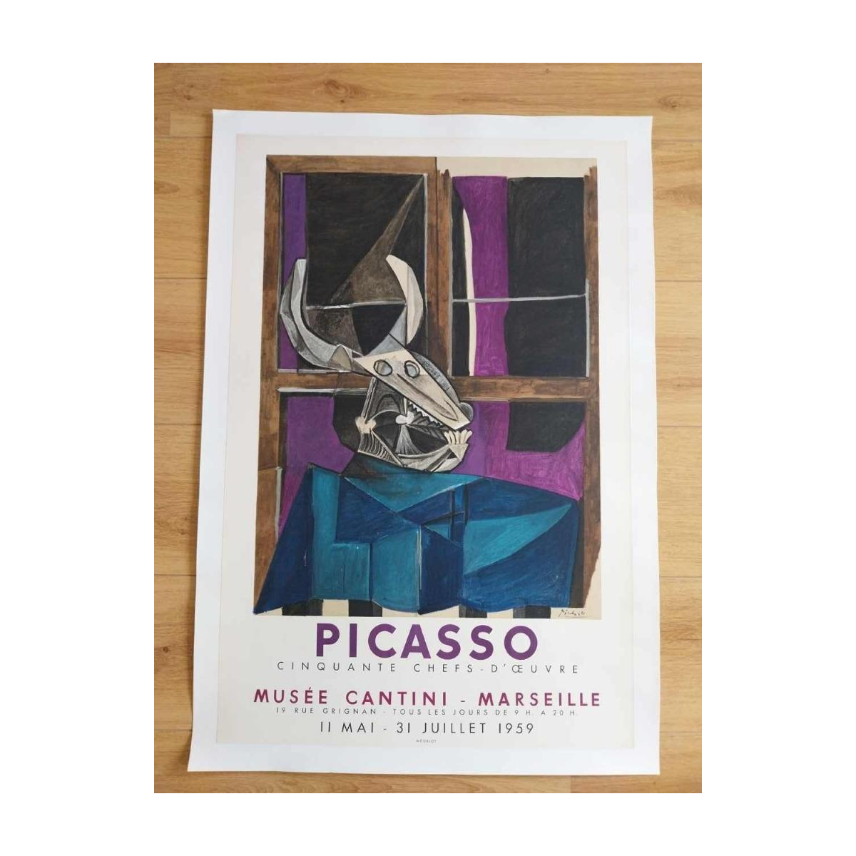 Affiche réalisée pour une exposition de Pablo Picasso (50 chefs-d'oeuvre) au musée Cantini de Marseille d'après un tableau original de 1942.