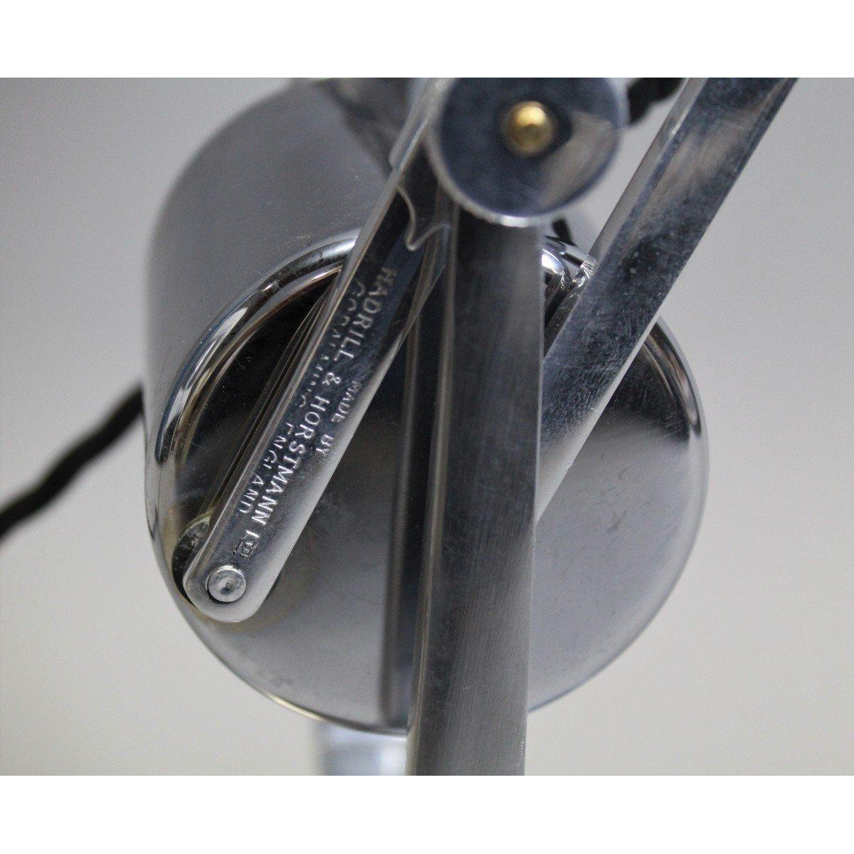La lampe Counterpoise est une lampe à bras équilibré conçue à la fin des années 1940 par l'ingénieur et homme d'affaires britannique Sidney Adolph Horstman (7 juillet 1881 - 11 juillet 1962). En 1904, Horstmann et ses frères ont fondé Horstmann Gear pour produire une boîte de vitesses à vitesse variable qu'il avait inventée pour les voitures et les motos. L'entreprise est ensuite devenue une société d'ingénierie générale et s'est spécialisée dans les commandes d'éclairage public au gaz, les interrupteurs horaires, les jauges et, plus récemment, les commandes de chauffage central. En 1913, Horstmann a fondé une entreprise automobile, Horstmann Cars, qui a ensuite été rebaptisée Horstman Cars. La production automobile a cessé en 1929, date à laquelle 1 500 ou 3 000 voitures avaient été fabriquées. Après la Seconde Guerre mondiale, Horstmann a formé une nouvelle société d'ingénierie électrique avec GCT Hadrill, nommée Hadrill and Horstmann Ltd. Ils étaient surtout connus pour les lampes à contrepoids qu'ils produisaient, qui sont maintenant des objets de collection. La société a été acquise en 1955 par Simms Group, qui a également acquis Horstman Ltd. Hadrill and Horstmann Ltd. a déposé une demande de brevet, numéro 617 550 ou une conception utilisant le mécanisme le 24 mai 1950 et a fabriqué la lampe dans les ateliers de leur propre entreprise à Londres et Godalming, Surrey. Nous restaurons ces lampes dans nos propres ateliers à Londres et en Allemagne à un niveau très élevé. Toutes les lumières sont recâblées avec un nouveau câble textile à l'ancienne. Pour des raisons de sécurité, nous n'utilisons que des supports d'ampoules neufs avec une vis "Terre". Nous n'utilisons que des pièces de rechange provenant de vieilles lampes inutilisables. Expédition dans le monde entier - Les frais de douane et de douane sont à la charge de l'acheteur.