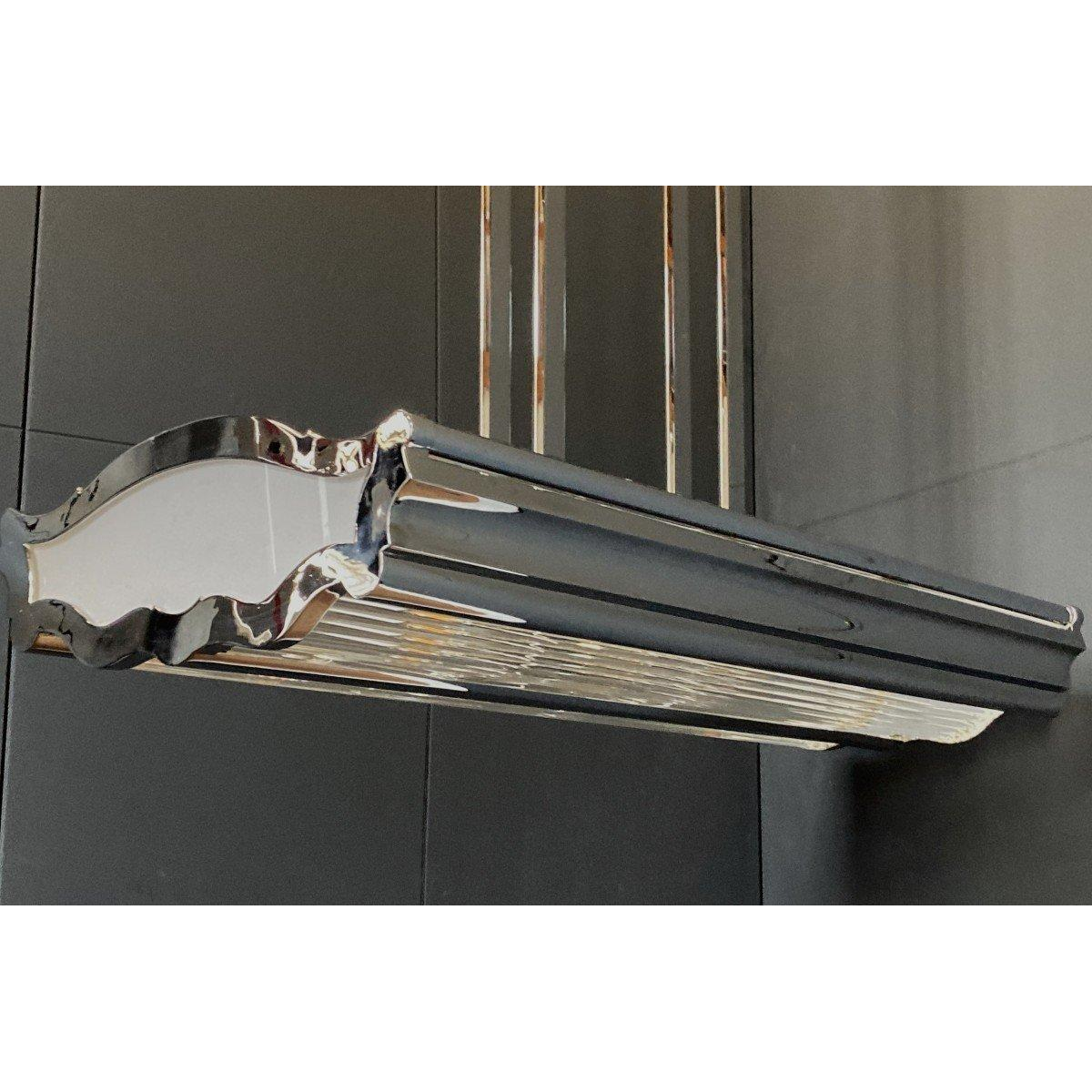 Grand lustre Art Déco dans l'esprit de Henri Petitot, bronze chromé et verrerie, France vers 1930s-1940s.