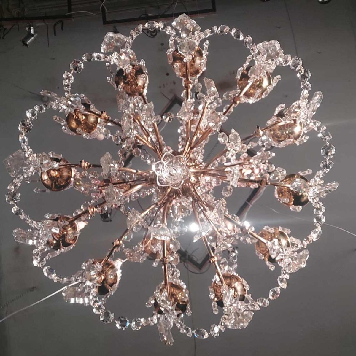 Lustre en bronze et cristal, 18 bras de lumières.