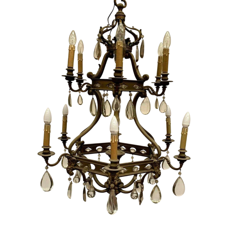 Lustre de style Renaissance en bronze et pendeloques de cristal.