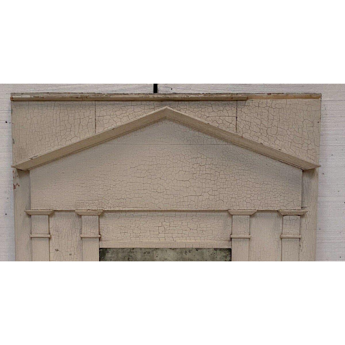 Miroir Empire en bois, colonnes chapiteau, patine craquelée, XIX siècle