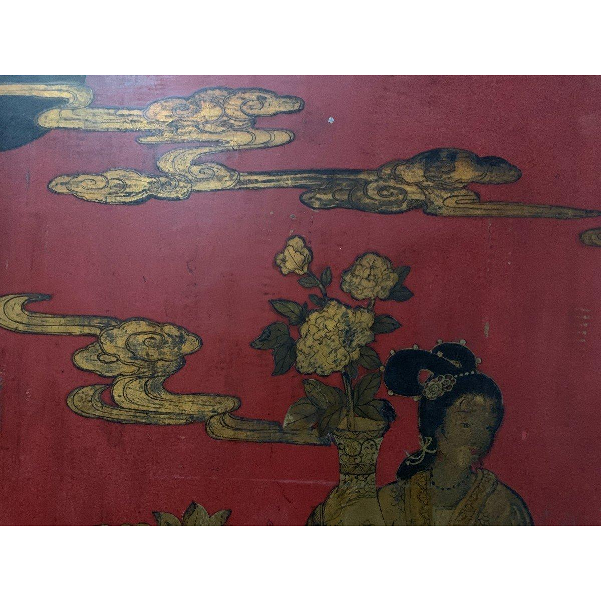 Ce formulaire permet uniquement de nous faire part d'un contenu illicite sur le produit : Paravent asiatique double face, bois sculpté panneau peint, décor de personnages chinois, XX siècle.