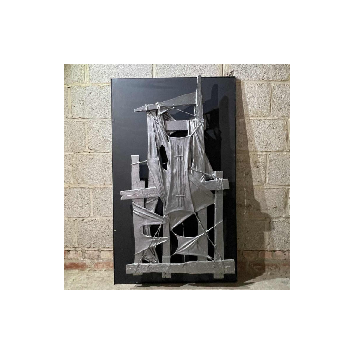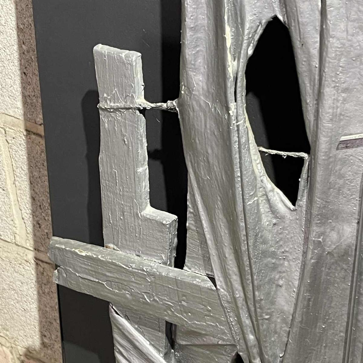 Oeuvre surpenante, à la fois sculpture murale brutaliste et tableau abstrait.