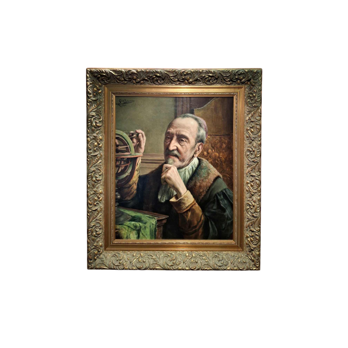 Léon Brunin “Le scientifique“ tableau portrait, huile sur toile, début XXe s