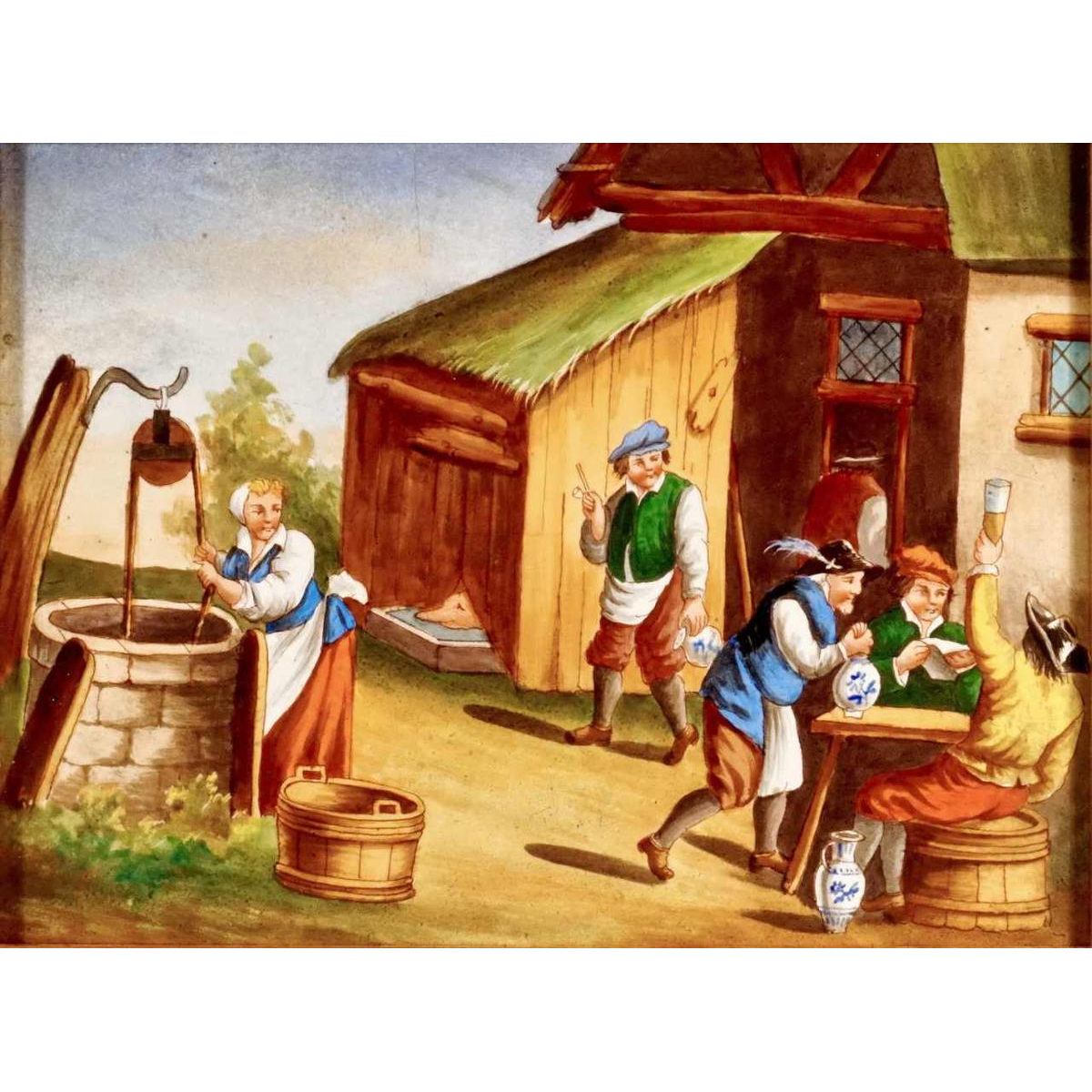 Plaque en porcelaine à décor peint d'après Teniers, XIXe s