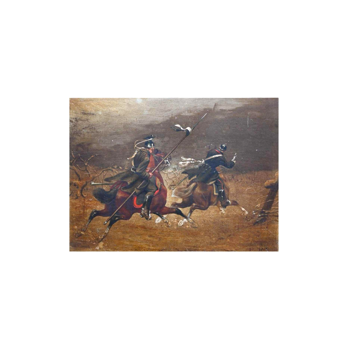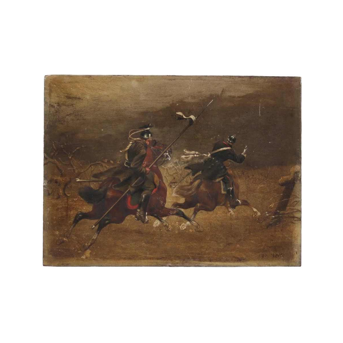 Ce formulaire permet uniquement de nous faire part d'un contenu illicite sur le produit : Christian Sell 'Scène militaire équestre allemande' peinture huile sur panneau, XIXe siècle.