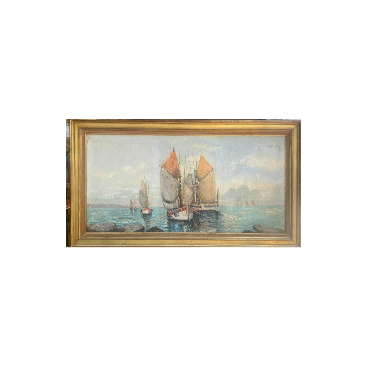 Ce formulaire permet uniquement de nous faire part d'un contenu illicite sur le produit : Marcel Catelein, tableau marine, peinture huile sur toile, signée 1920.