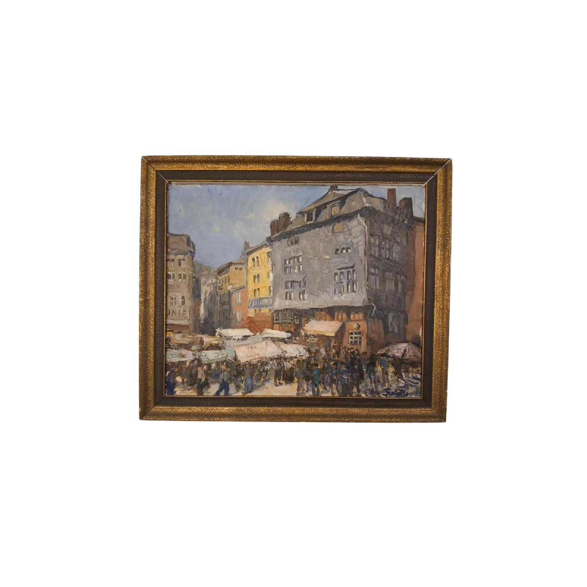 Ce formulaire permet uniquement de nous faire part d'un contenu illicite sur le produit : Georges Bouillon “Maison Havart Liège“ tableau huile sur toile, ca 1940.