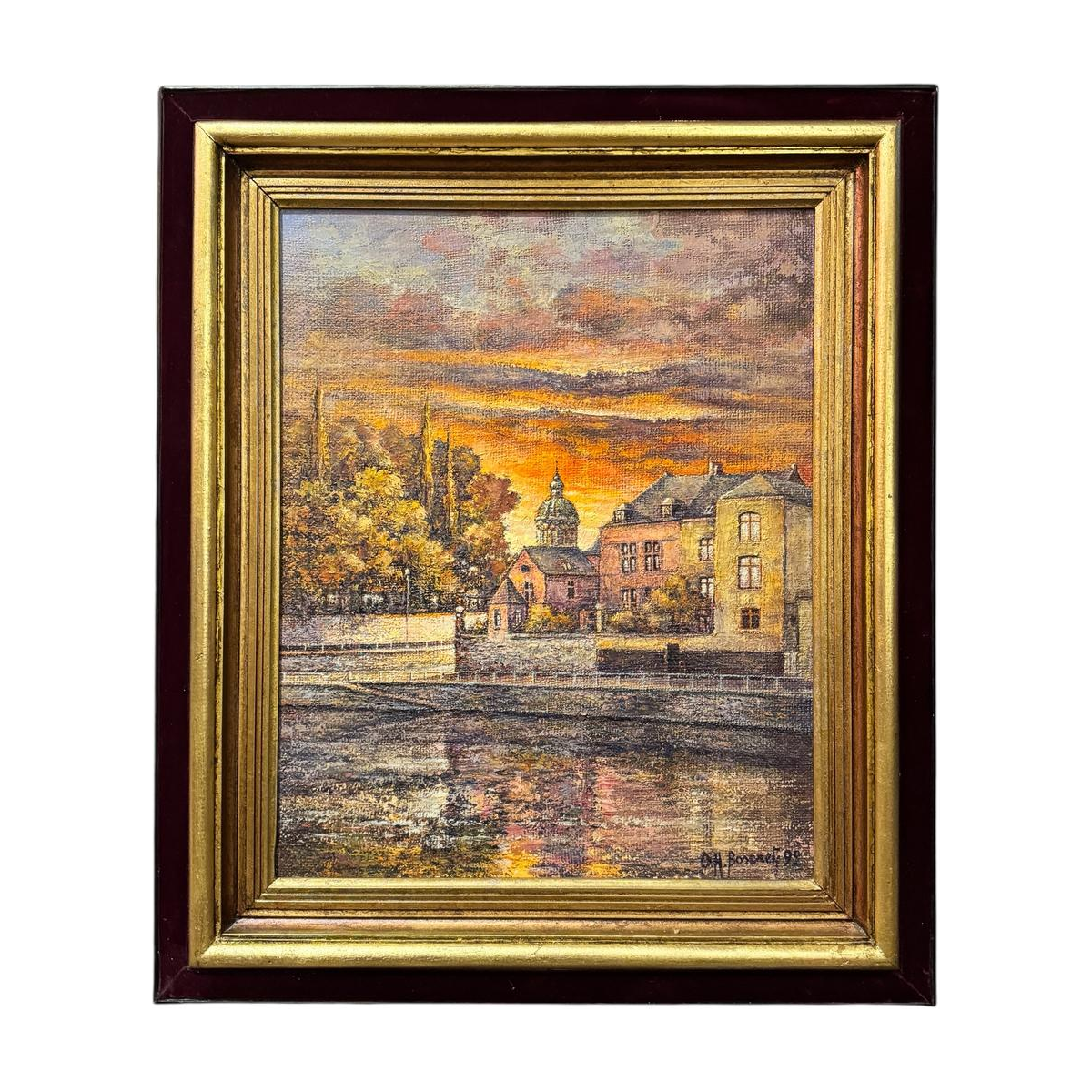 Olivier-Henri BOSERET «Soleil couchant à Namur» peinture huile sur toile marouflée