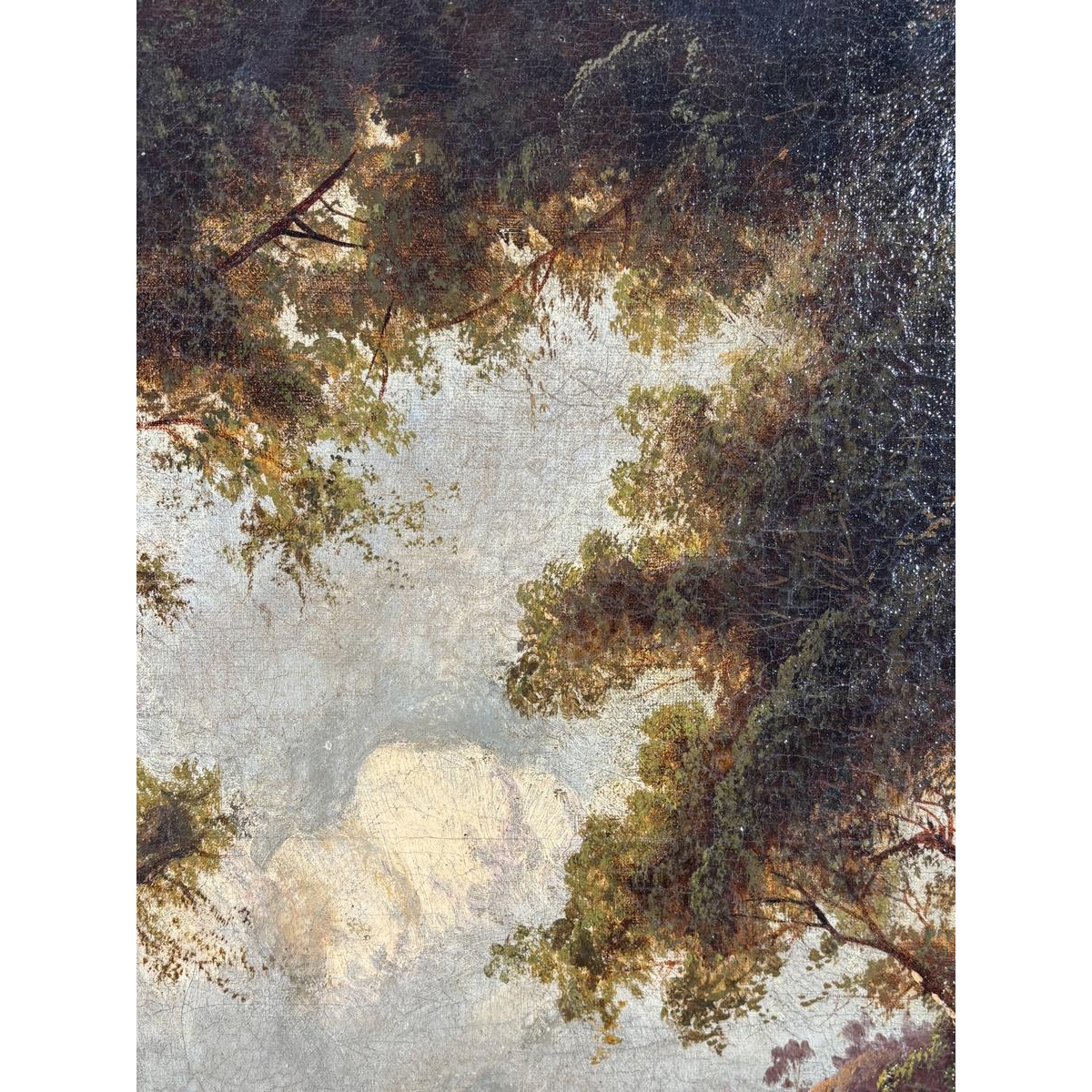 Belle patine ancienne, réentoilée, montée sur chassis d'origine à clés.