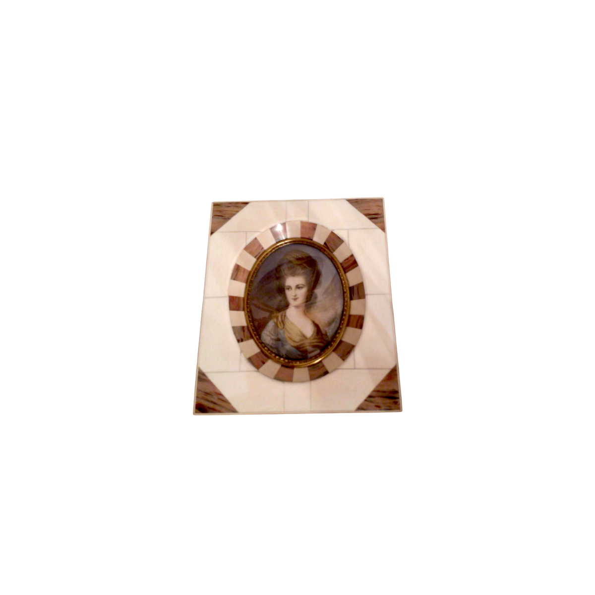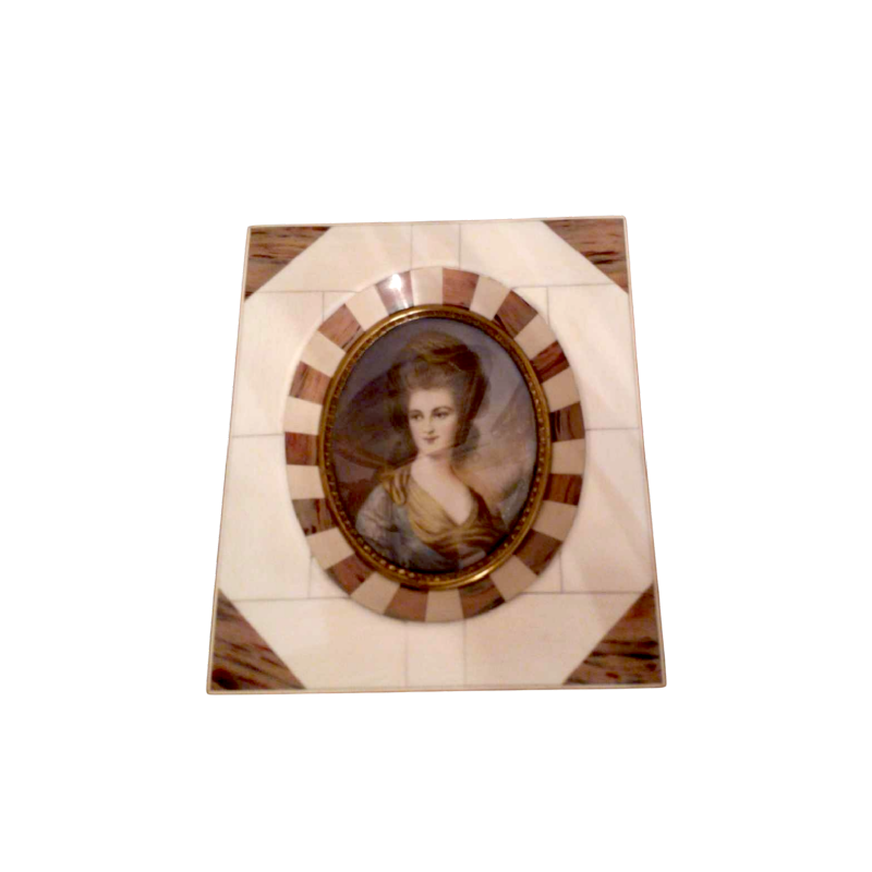 Miniature sur ivoire représentant Madame Beaufoy, signée Gainsborough (peintre anglais né en 1727 et décédé en 1788) dans un encadrement en partie en ivoire.