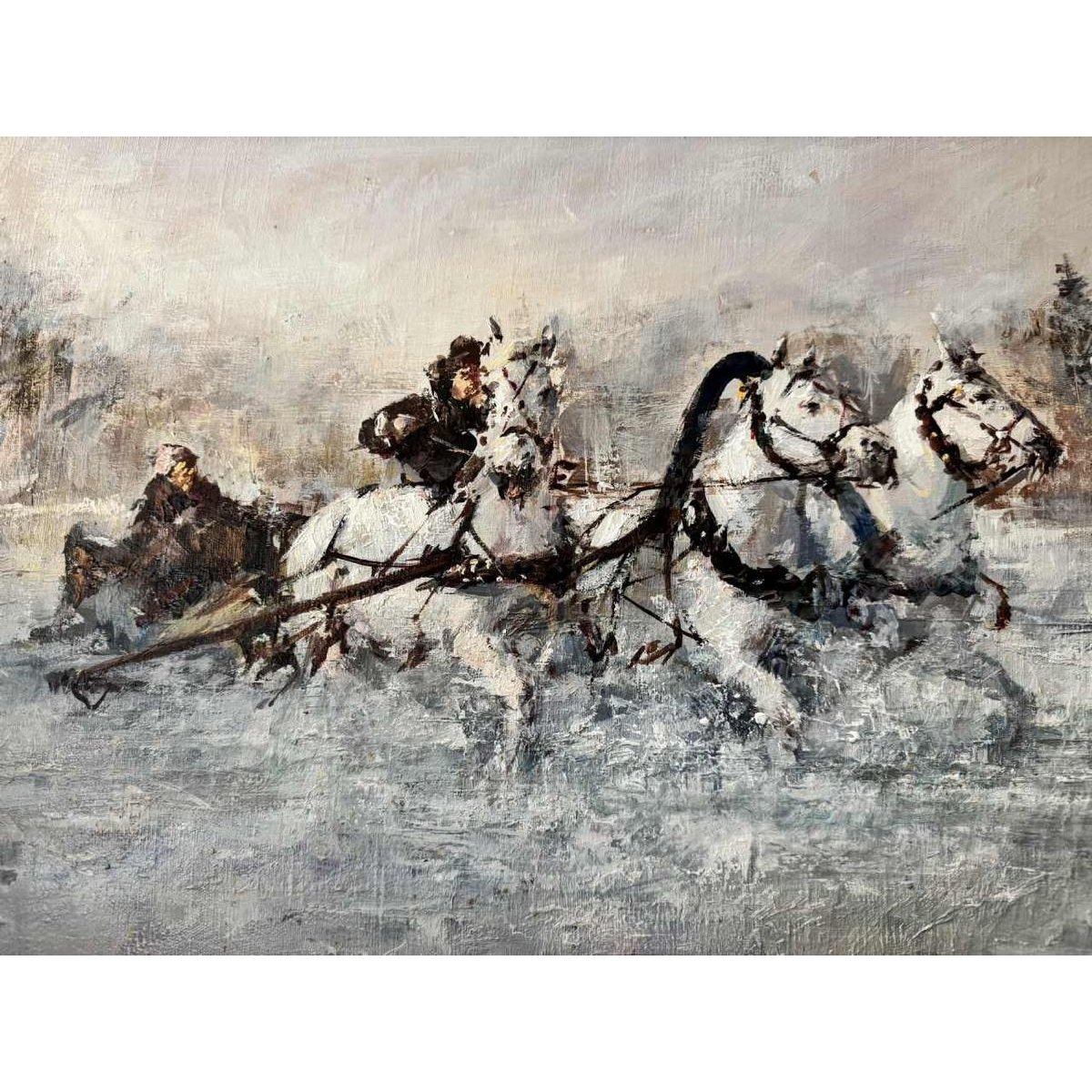 « Troïka » artiste à identifier, peinture huile sur toile datée 2002