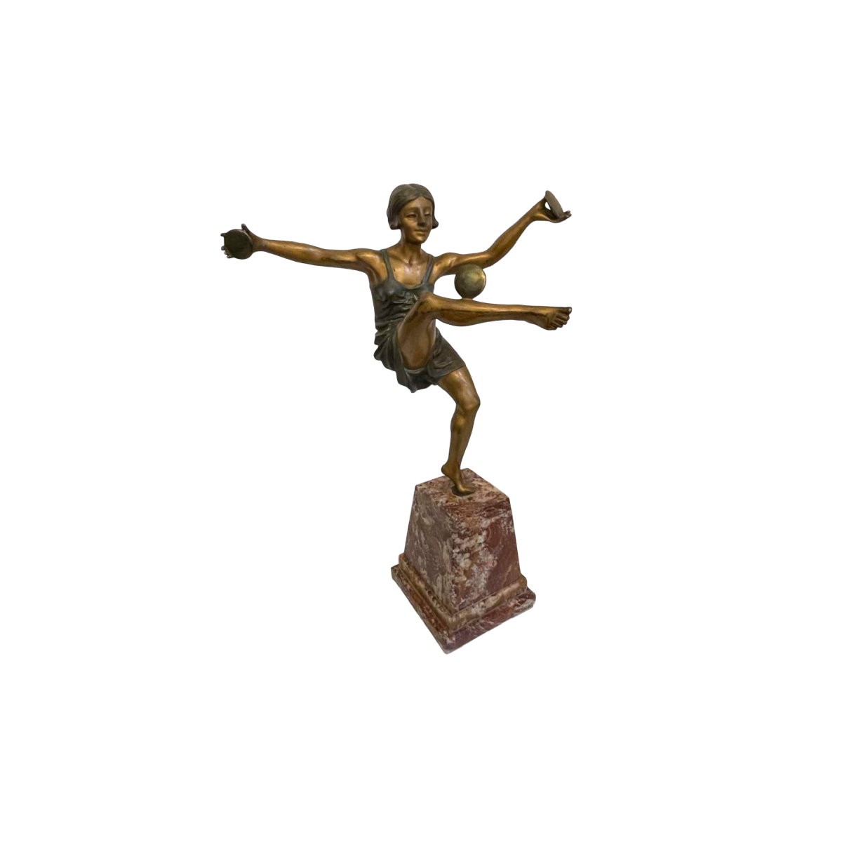 'Danseuse nue aux disques' sculpture Art Déco en bronze polychrome sur socle marbre.